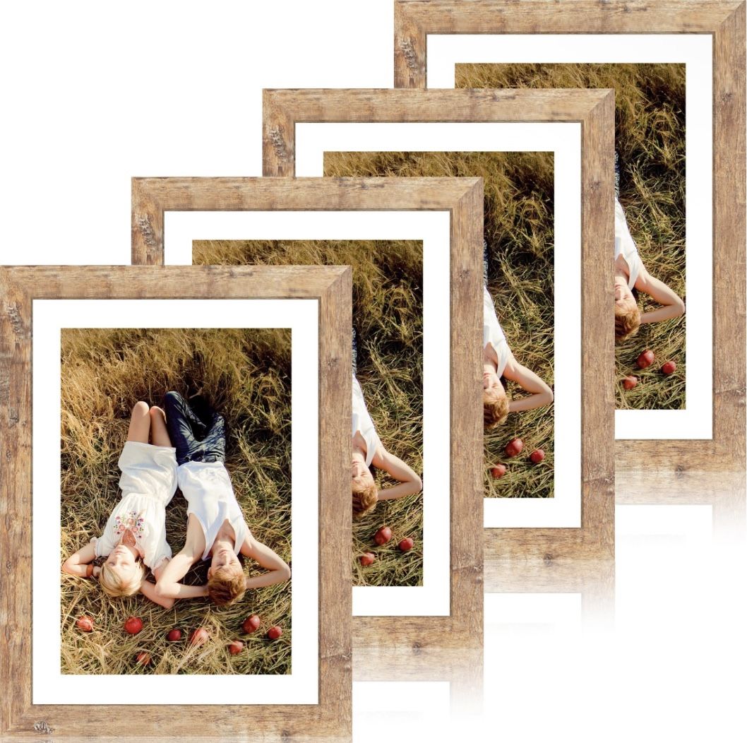 (4) Rustic Brown Frame Display 8x12 Pictures With Mat Or 10 X 14 Without Mat