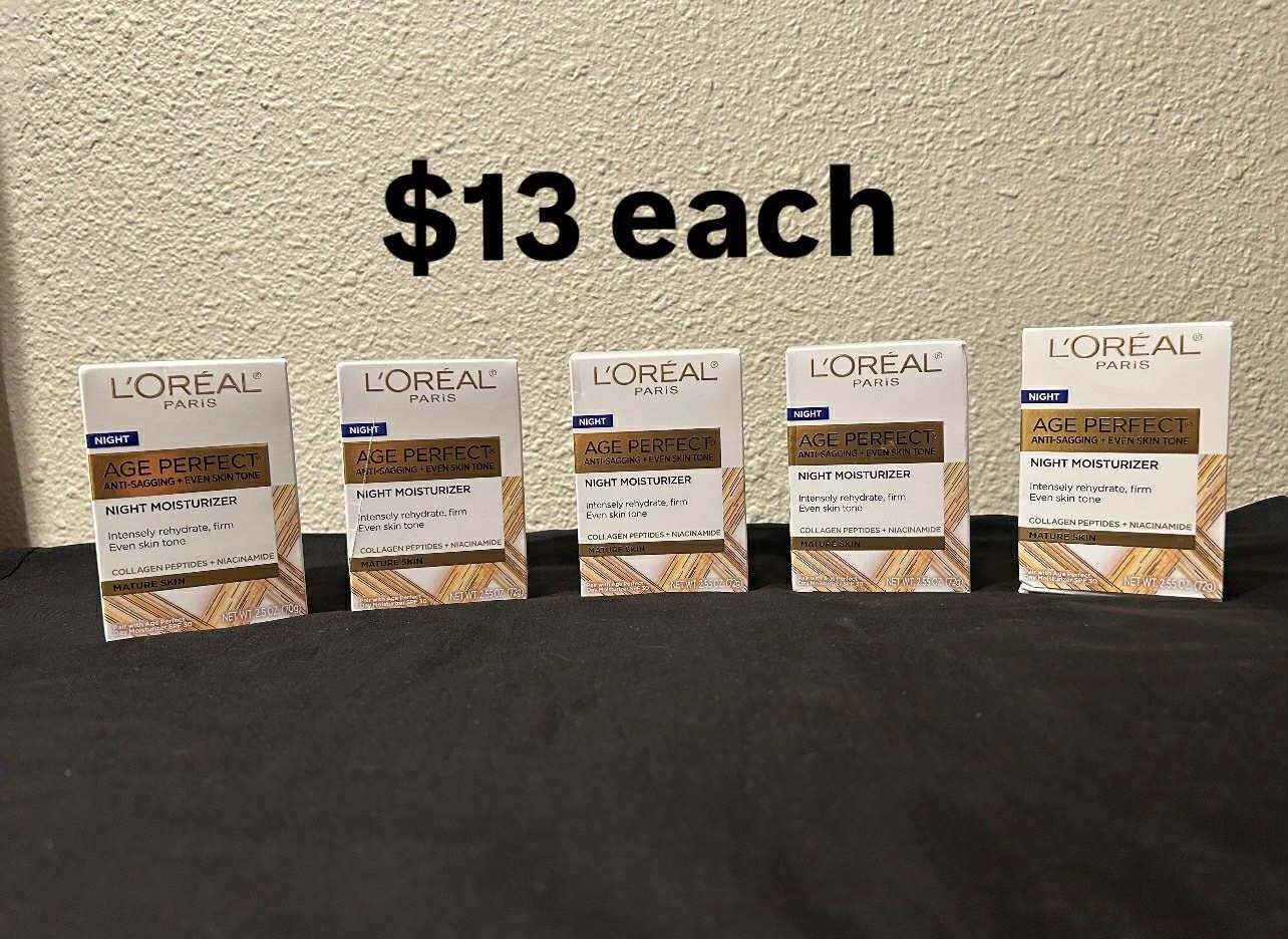 $13 each L’Oréal Age Perfect anti- sagging + even skin tone night moisturizer (2.55 OZ)