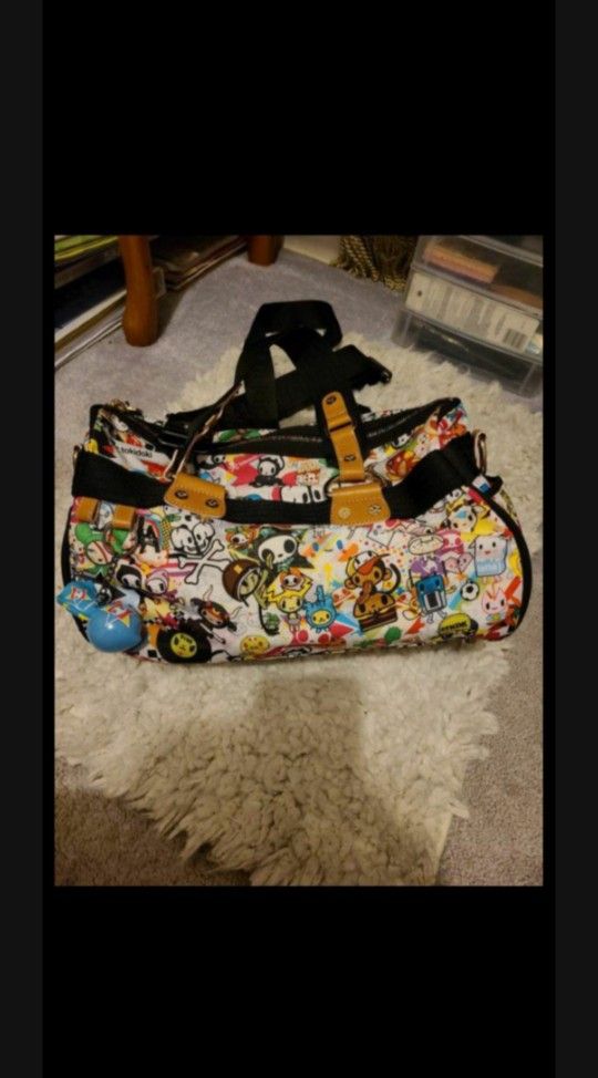 Like new! Used a handful of times. Tokidoki Discoteca Serena crossbody bag Includes strap and keychain. 12"L x 9"T x 8"D Cash and Pickup only. Thanks. Tags: luggage, carry-on, purse, gym bag, sack, satchel.