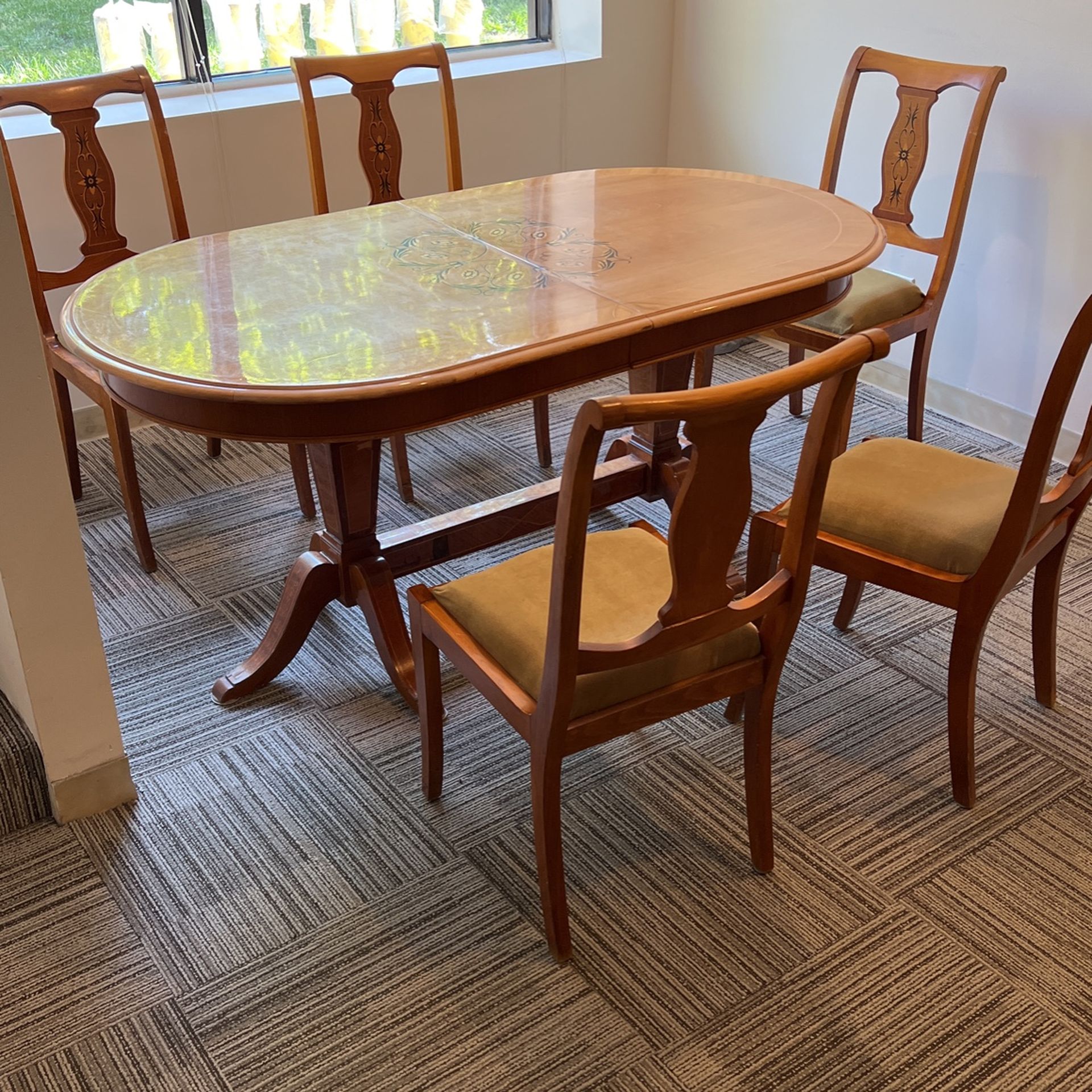 Beautiful, wood dining table that can be extended to accommodate larger party.