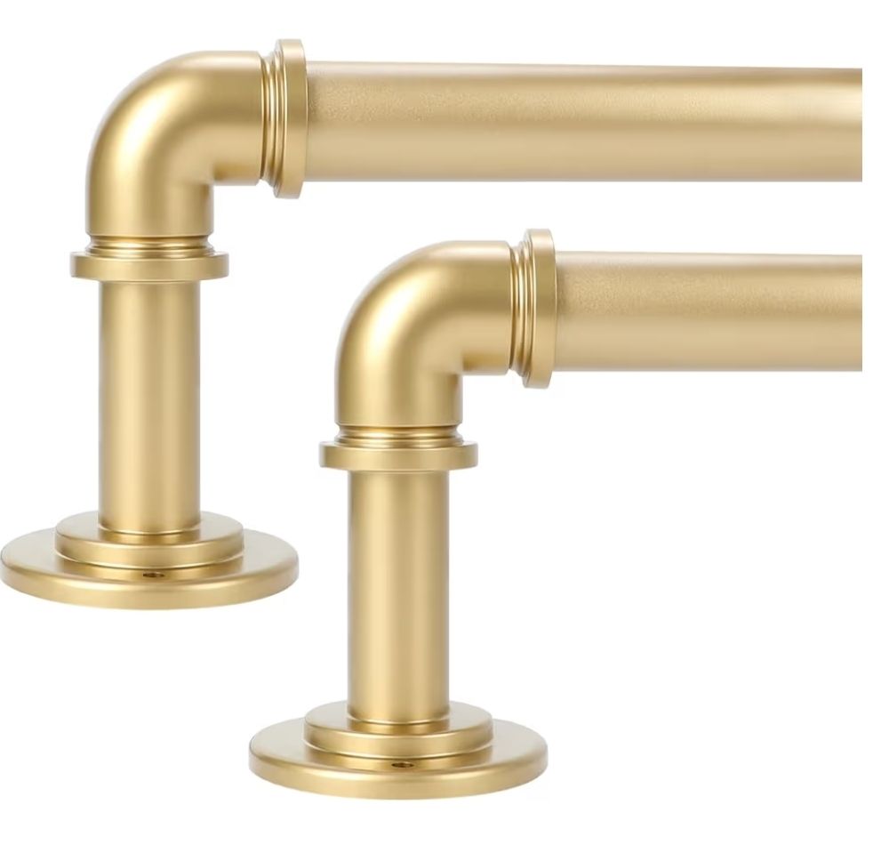 OLV 2 Pack Gold Industrial Curtain Rods for Windows 48 to 84 Inch(4 to 7 Feet), 1 Inch Diameter Blackout Wrap Around Adjustable Heavy Duty Window Drap