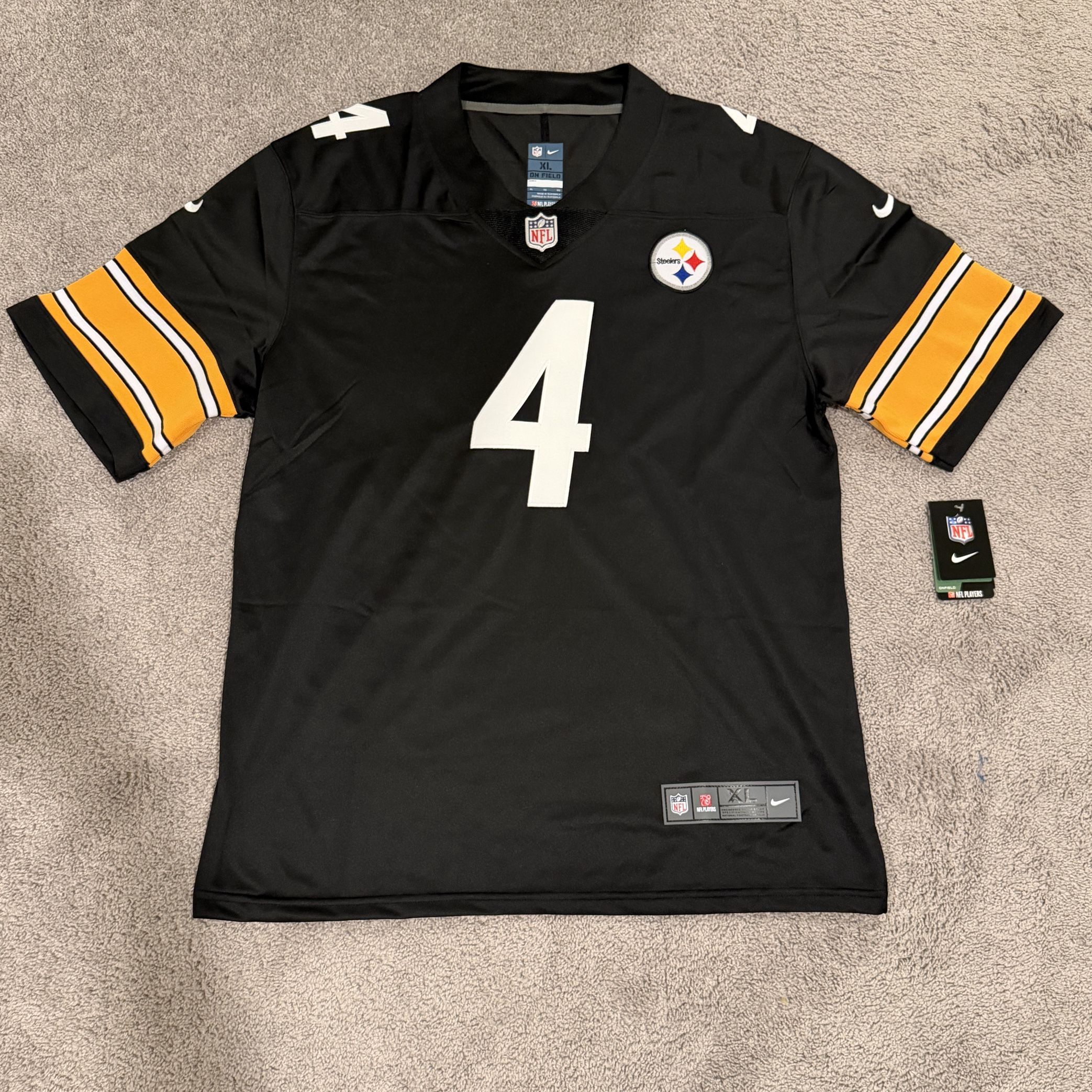 DK Metcalf #4 Pittsburgh Steelers Jersey (Black) — Size XL Brand new with tags. Classic black design with gold and white detailing. Perfect for game-day fits! Brought to you by Street Heat Co. — Made for players, not spectators. ✅ Trusted Seller