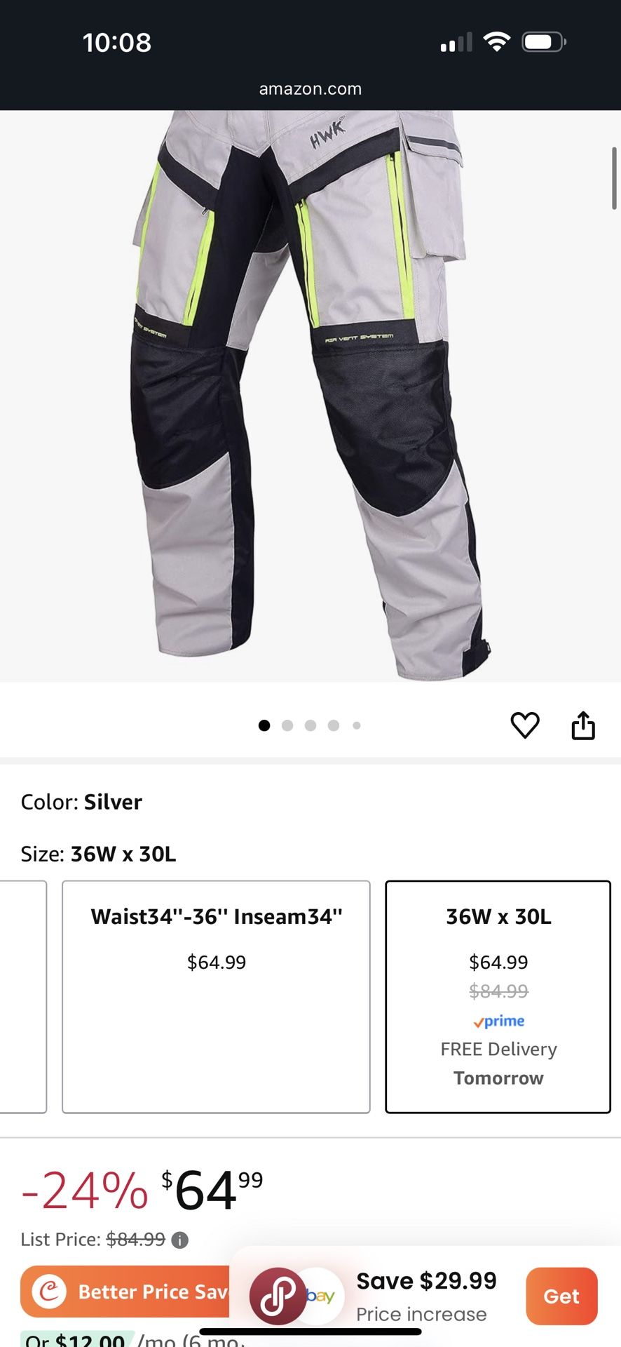 Up for sale or a brand HWK motorcycle riding pants brand new with tags size extra large retails for $65 on Amazon