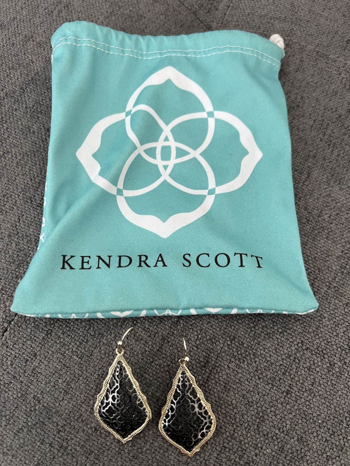 Kendra Scott Drop earrings, worn 3x, gold and black