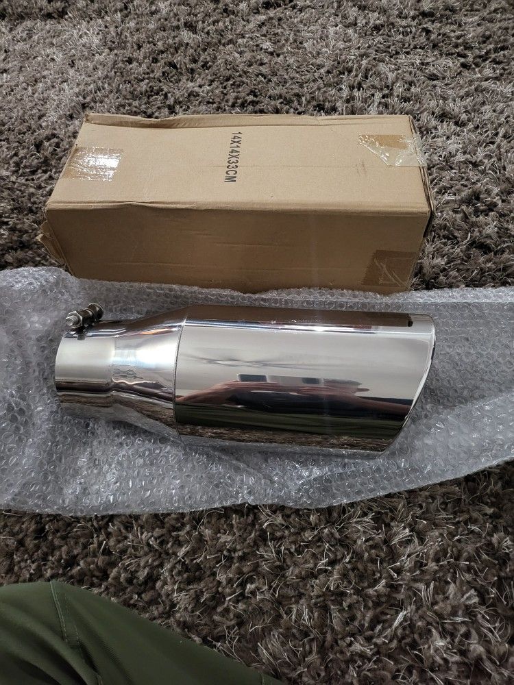 Brand new exhaust tip never used dimensions in last pic let me now if u jave any questions $25 Truck Muffler Pipes Ford Dodge Sierra Silverado Diesel Chrome