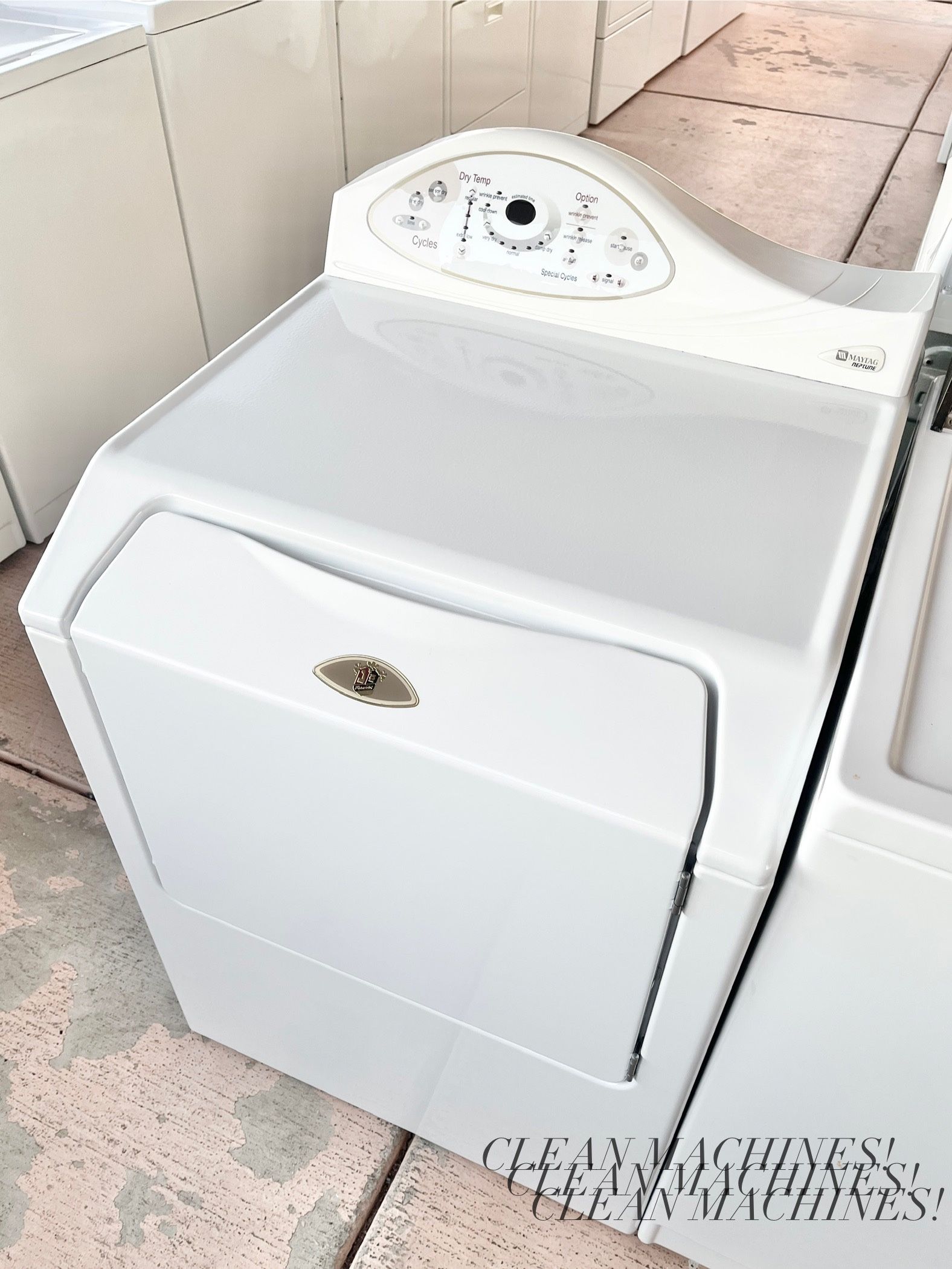 CLEAN MACHINES! Maytag Neptune gas dryer. Super capacity, wrinkle prevent. Completely serviced in good condition and works great. Clean from the inside out. Brought back as close to new as possible. 90 day warranty and ask about delivery. Many dryers available. Capacity: 6.0 cubic feet Width: 27 Depth: 29 Height: 43