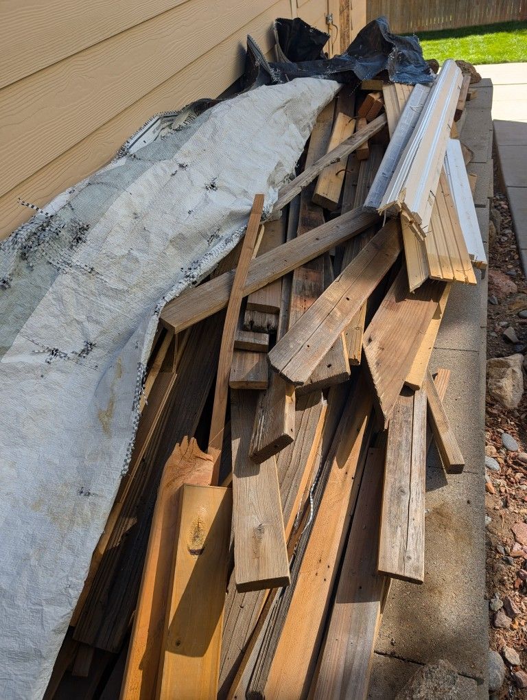There is assorted 2x4s and wood and weathered wood and reclaimed wood in this pile. I need it all gone. I'm selling for $50 or best offer. All has to be taken at the same time
