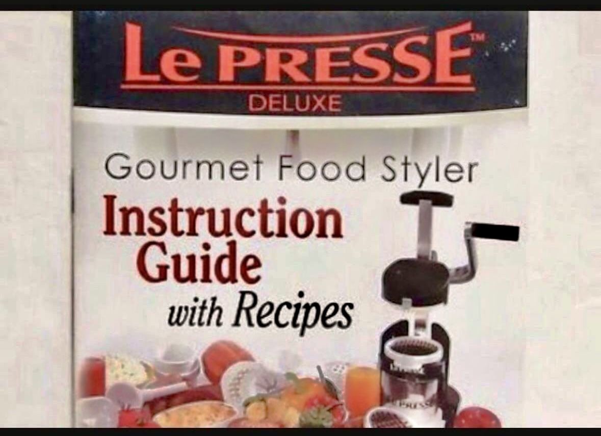 Le Presse Deluxe Gourmet Food Styler, Slicer, and Juicer. Eight in One machine. Brand New!