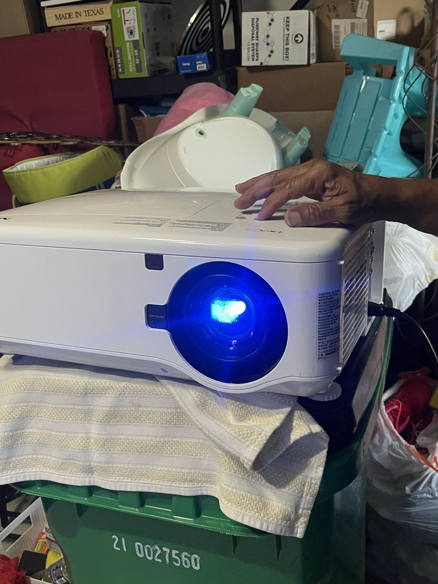 High-performance NEC NP4100 DLP projector in great working condition. Bright 6200 lumens output – perfect for large venues, classrooms, outdoor movies, or business presentations. Lamp is tested and working. Turns on and projects clearly. • Model: NP4100 • Brightness: 6200 lumens • Resolution: Up to 1080p (HD capable) • Lens shift & zoom • Multiple input options: HDMI (via adapter), VGA, DVI, Component, S-Video, and more • Built-in speaker • Power cord included • NO remote included • Additional AV cables available upon request (shown in red bag)