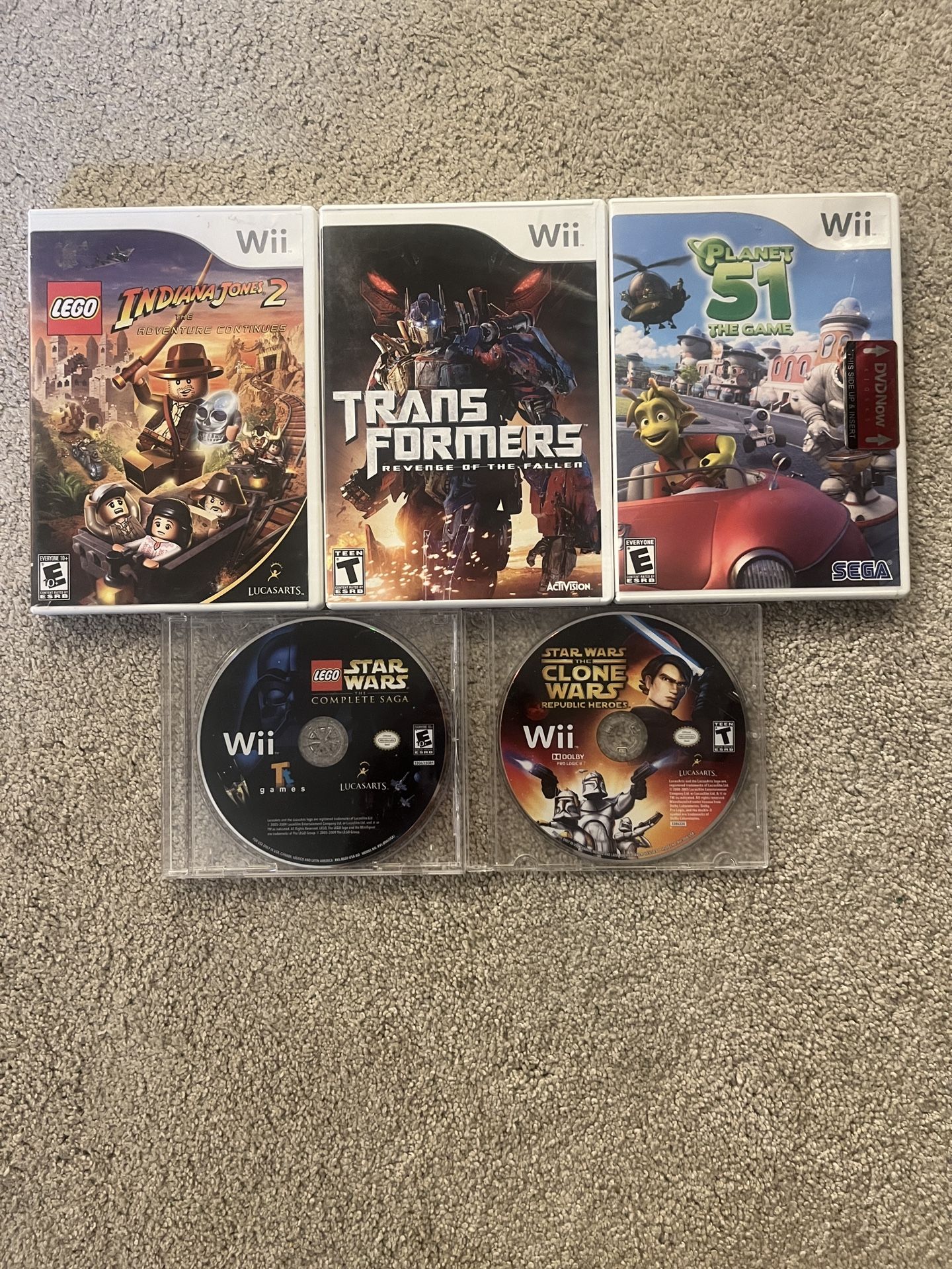 Wii Games 5 Lot Bundle Movie Star Wars Indiana Jones Planet 51 Transformers