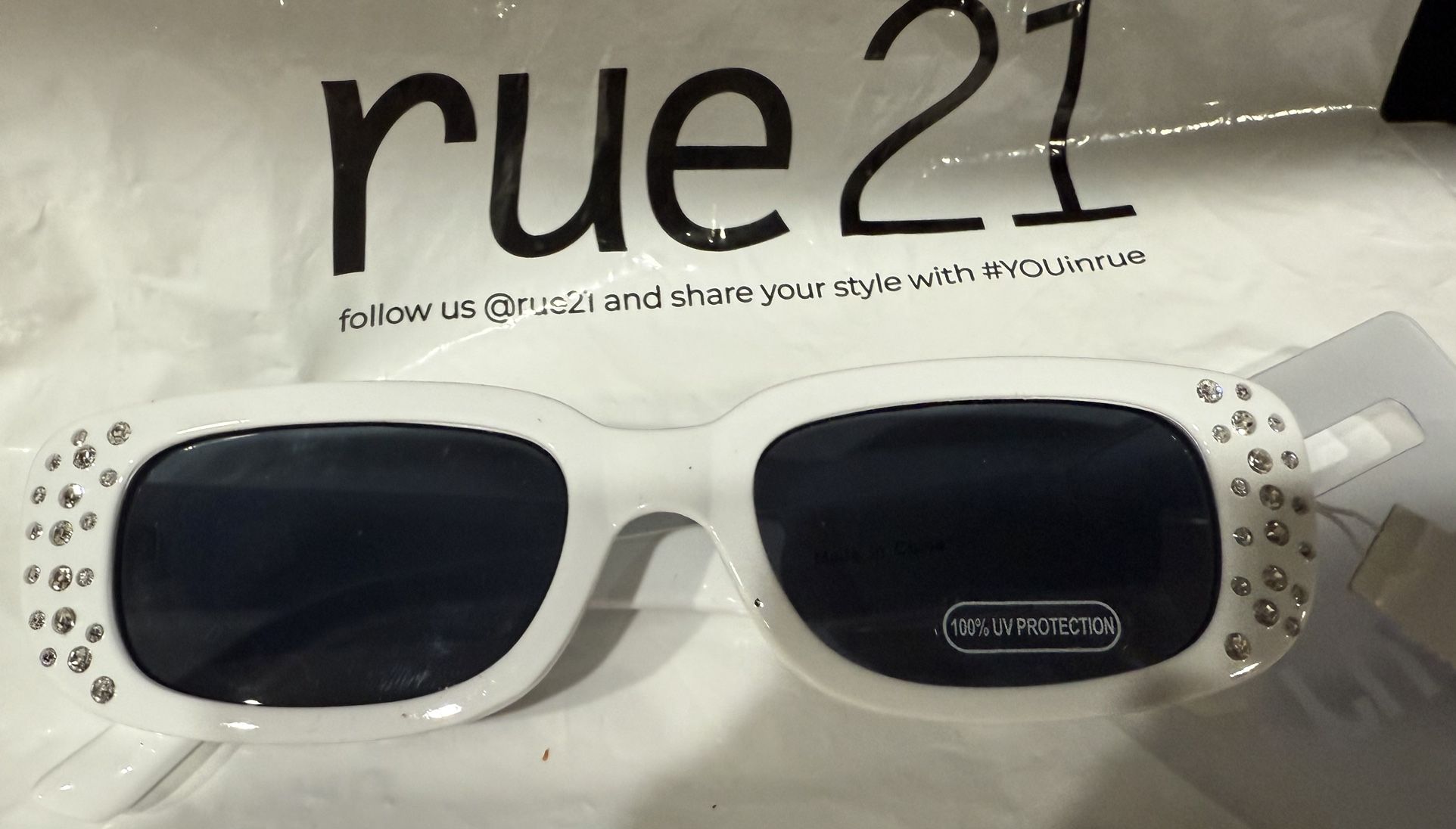 Rue21 White Frame Black Tint Sunglasses with Stud Accent