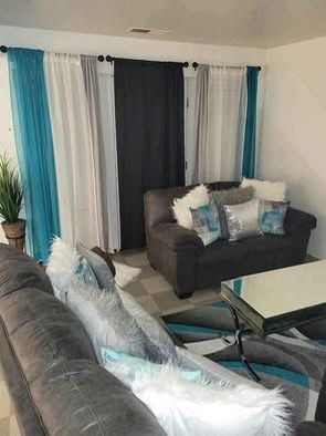 I have a nice living room set pet free very clean home. The couches like new. No scratches, no rips, selling because I’m getting something new I took very good care of it I also have the two rugs I have about 15 pillow covers. I also have curtains. Candles and other things to go with the whole set.