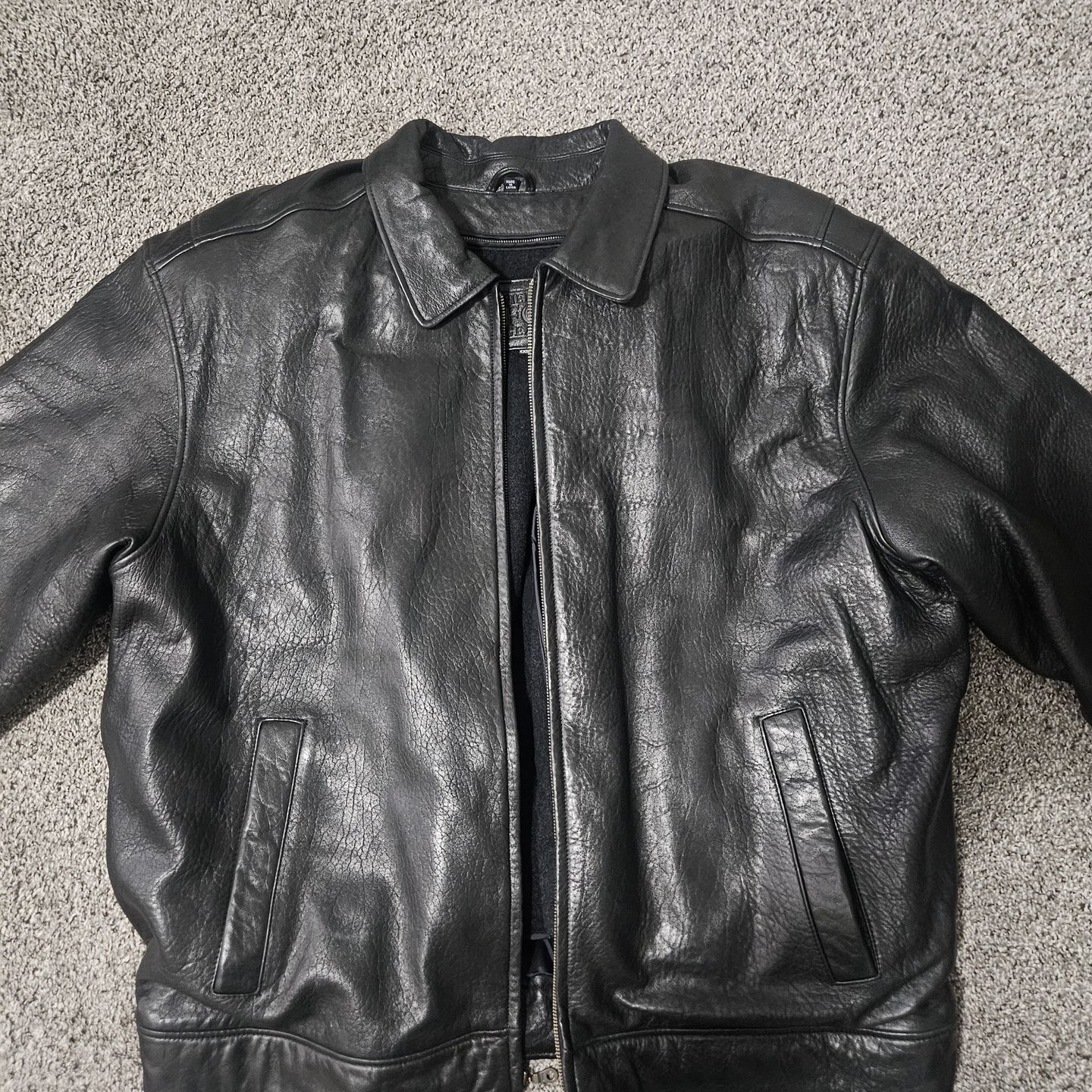 Excellent pre-owned condition. Genuine leather jacket in black with insulated Thermolite Plus lining. Heavyweight and warm. Classic zip-front design with side pockets and snap cuffs. Size XXLT (Tall fit). Measurements available upon request.