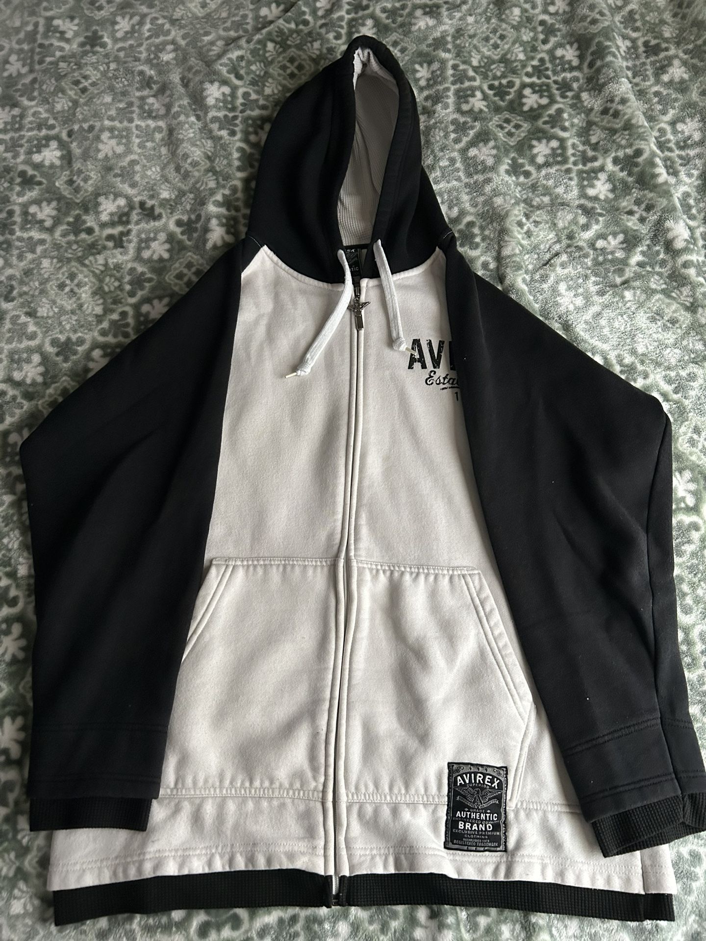 The hoodie is a large fits good IMO sleeves are a bit faded but stills looks nice.