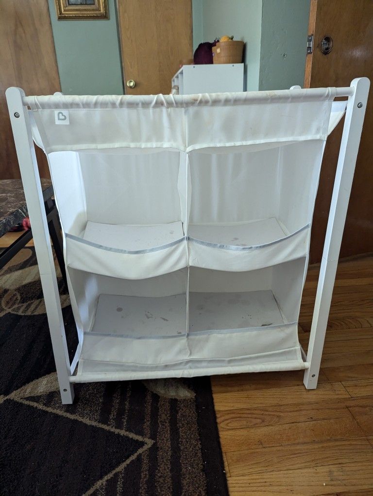 Great product. Used minor stains throughout. Soap and warm water can be used to clean - quick drying material. Used for 2 years. You can insert new cardboard and use the existing ones for accurate measurements. $5 pick up in berwyn