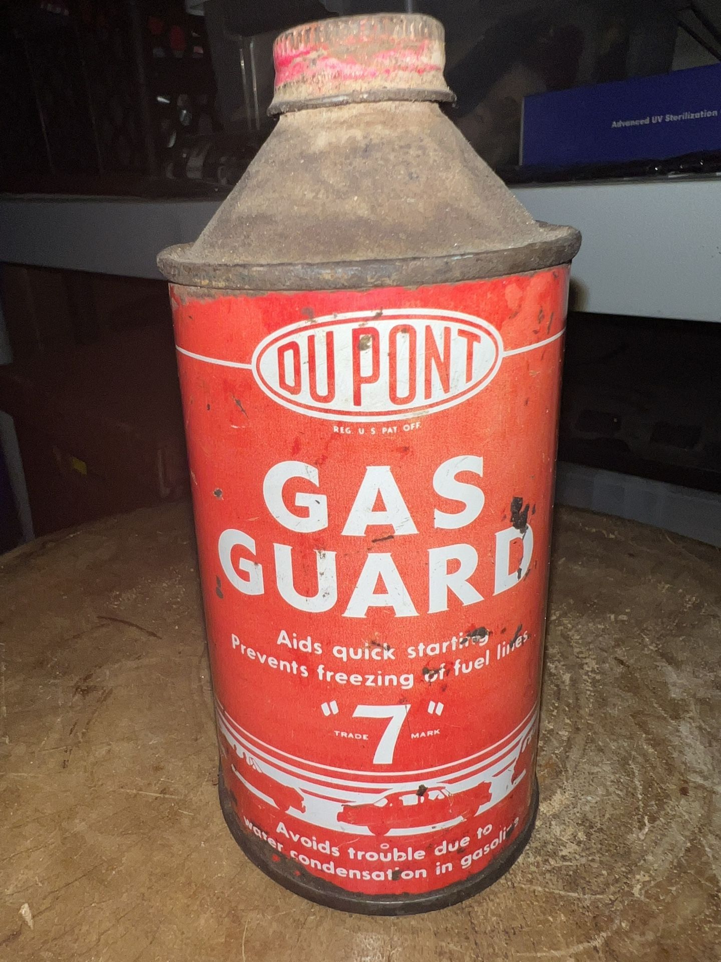This original DuPont Gas Guard van is cone shaped, no rust and has the cap. Great for the can collector
