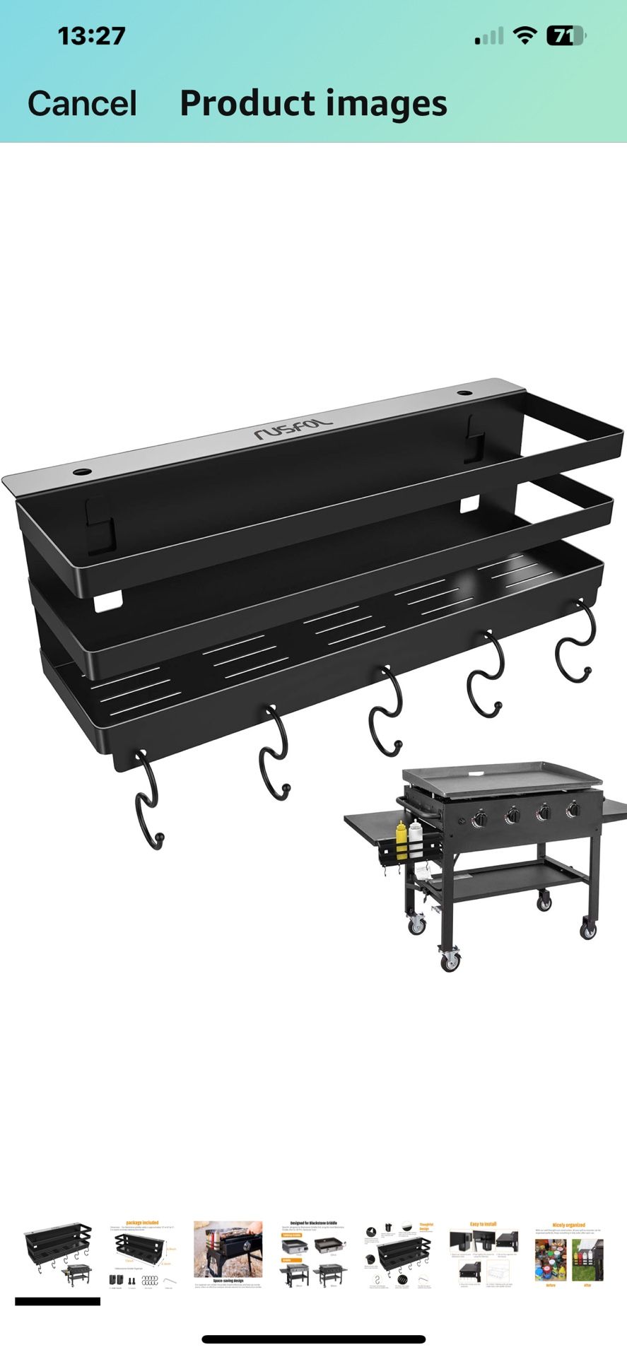 Pick up only in Chino Hills Designed for Blackstone Griddle: Specifically designed for Blackstone Griddle Grill, snug fit the 28” griddle and 36” griddle. (Not for 36"Pro-Series/air fryer) High-Quality Material: The griddle is made of high-quality stainless steel, and it is durable enough for longtime use. Reinforced spot welds help to load more items, and the screws fit the brackets properly. Space-saving design: Our organizer can contain the jumble of parts effectively and frees up counter space, offering an effective compact storage solution for your Blackstone griddle. Nicely organized: With our well-thought-out construction, all your grill accessories can be organized perfectly. Keep everything in tidy order after each use. Easy to Install: The grill caddy is user-friendly and can be installed easily. Our Blackstone griddle caddy is approxmately 13"x4.9”x4.3", it is stylish and keeps the tabletop less cluttered, package included: 1xBlackstone Griddle Organizer, 5xS-hooks, 2 x metal mounts, 2 x screws, 1xAllen key.