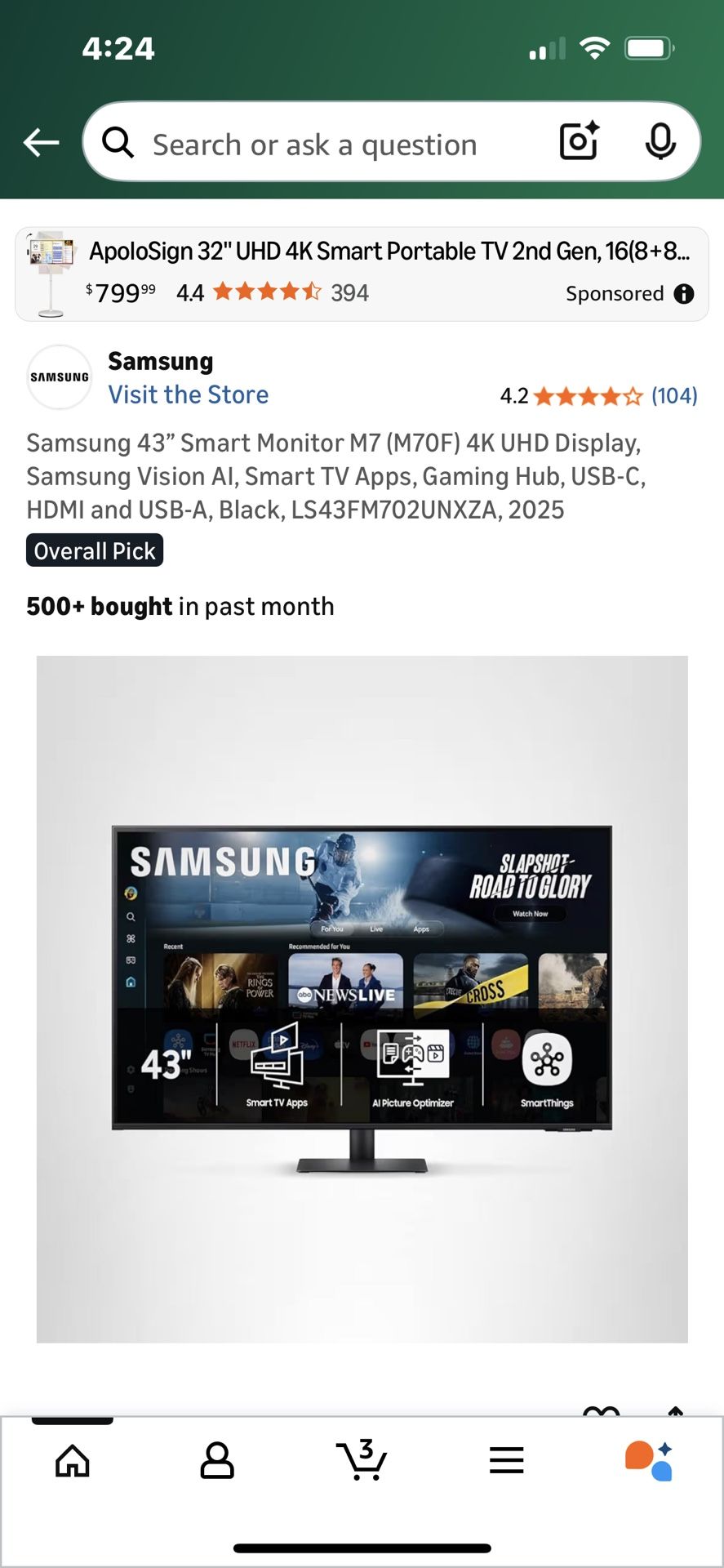 Samsung 43" Smart Monitor M7 (M7OF) 4K