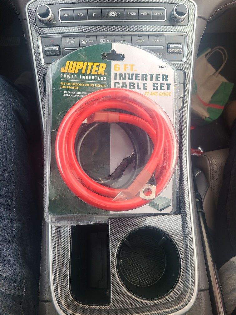 Unopened, brand new in the box, we have a Jupiter, power inverters, run your household and tool projects from anywhere. It is a 2 gauge thickness. With 6 foot of cord .. Serial number 63747. 50.00
