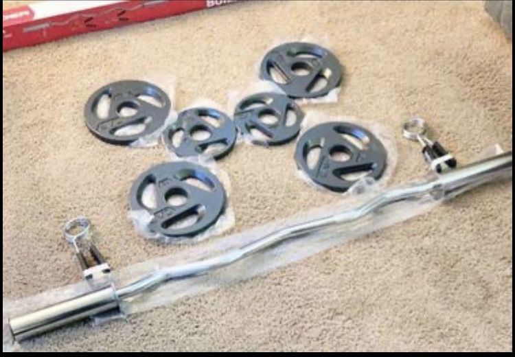 Brand New Olympic Weight Set with Curl Bar And Dumbbell Handles Included