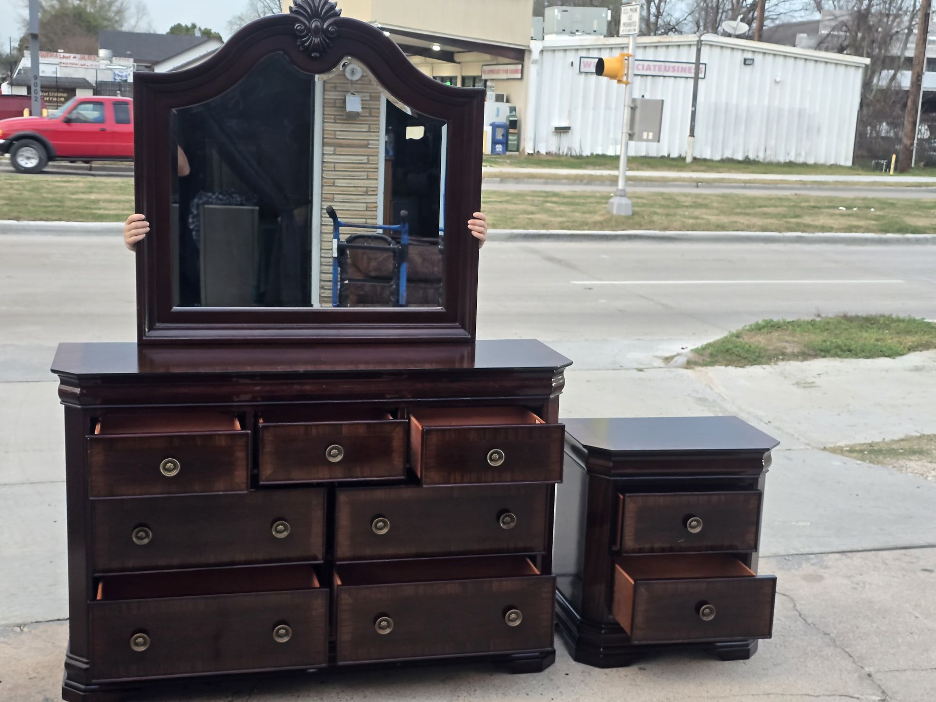 DRESSER WITH MIRROR AND NIGHTSTAND