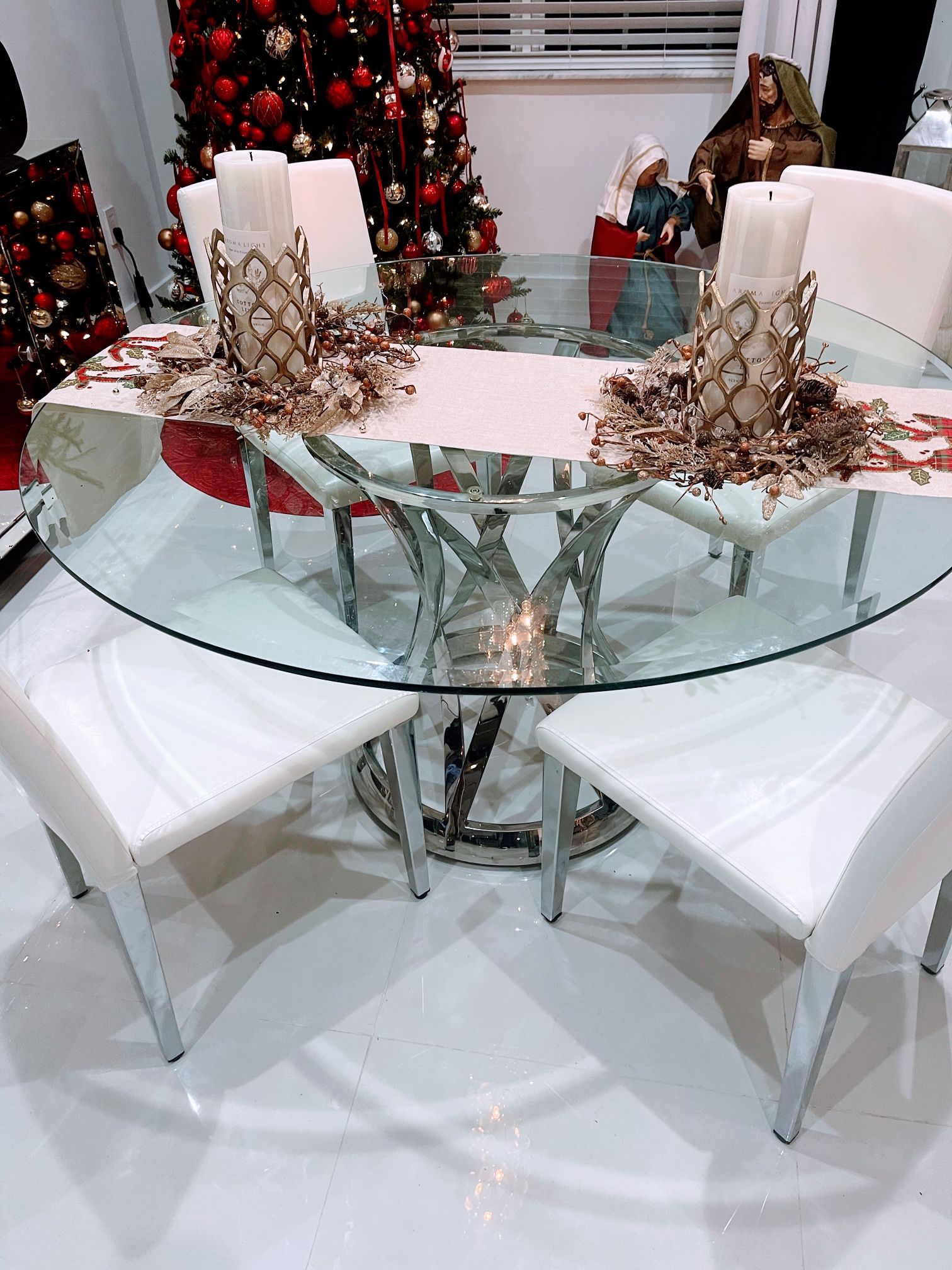 Netta 53”Glass Round Beveled Edge Table & Chairs