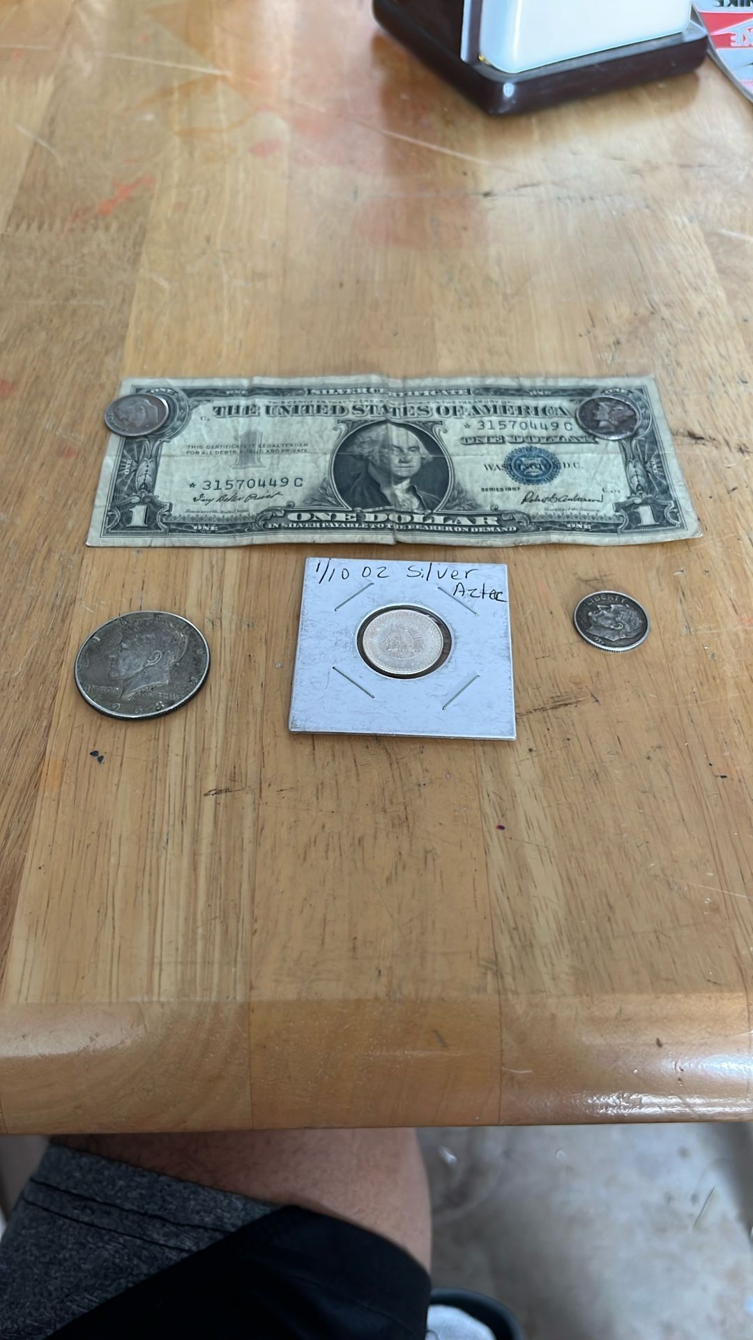 1 half dollar 3 dimes 1 dollar bill blue seal silver certificate from 1957 Asking 30 for all