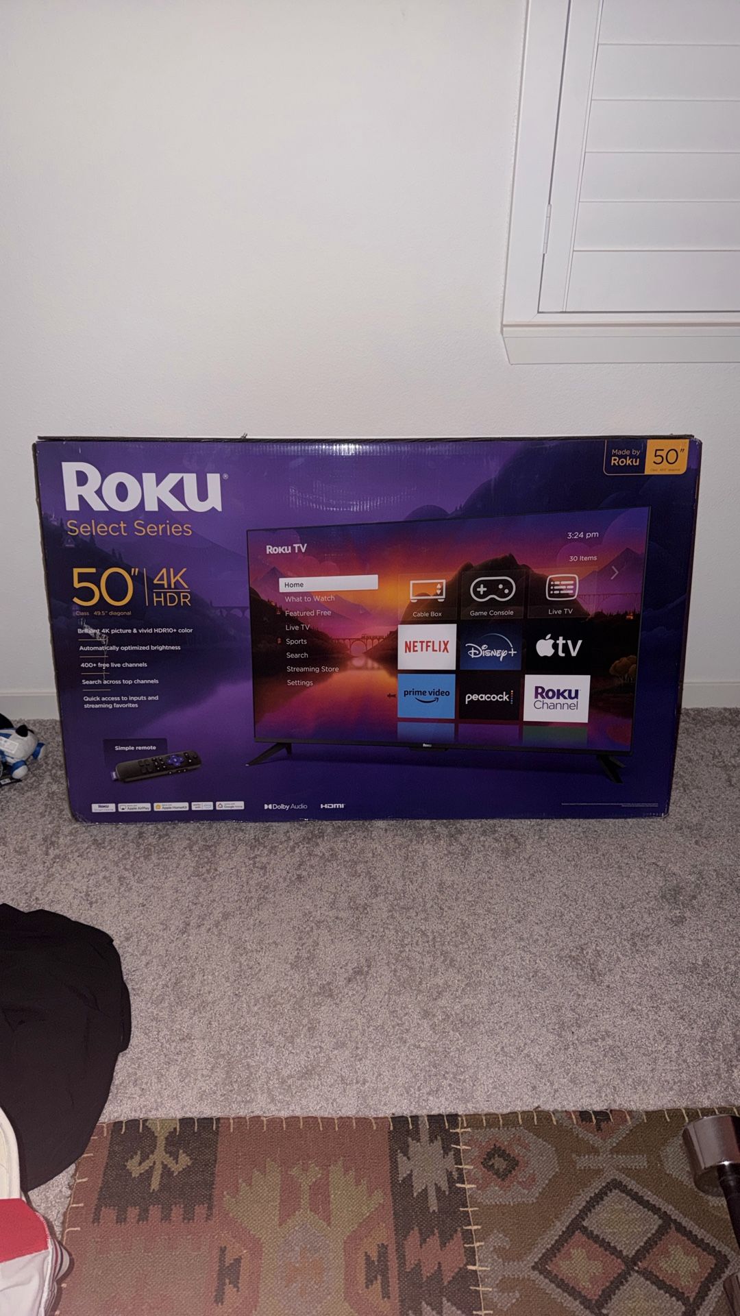Brand new 50” 4k Roku smart tv comes with remote and everything included since it’s unopened brand new