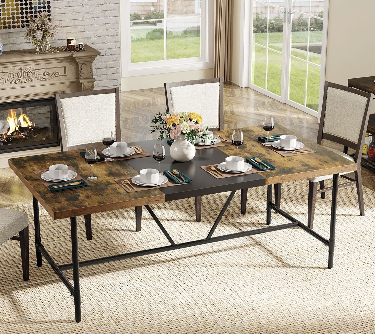 F1595 Rectangle Dining Table, Industrial Breakfast Dinner Table for 6-8 people
