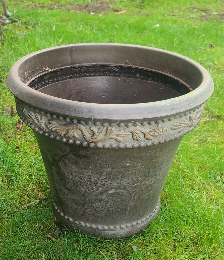 Large Brown Plastic Flower Pot With Design