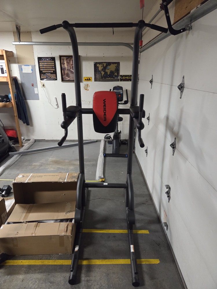 Weider power tower in excellent condition. Here are some features: *Vertical Knee Raise Station *Multi-Grip Pull-Up Station *Integrated Dip Station *300 Lb. Weight Capacity