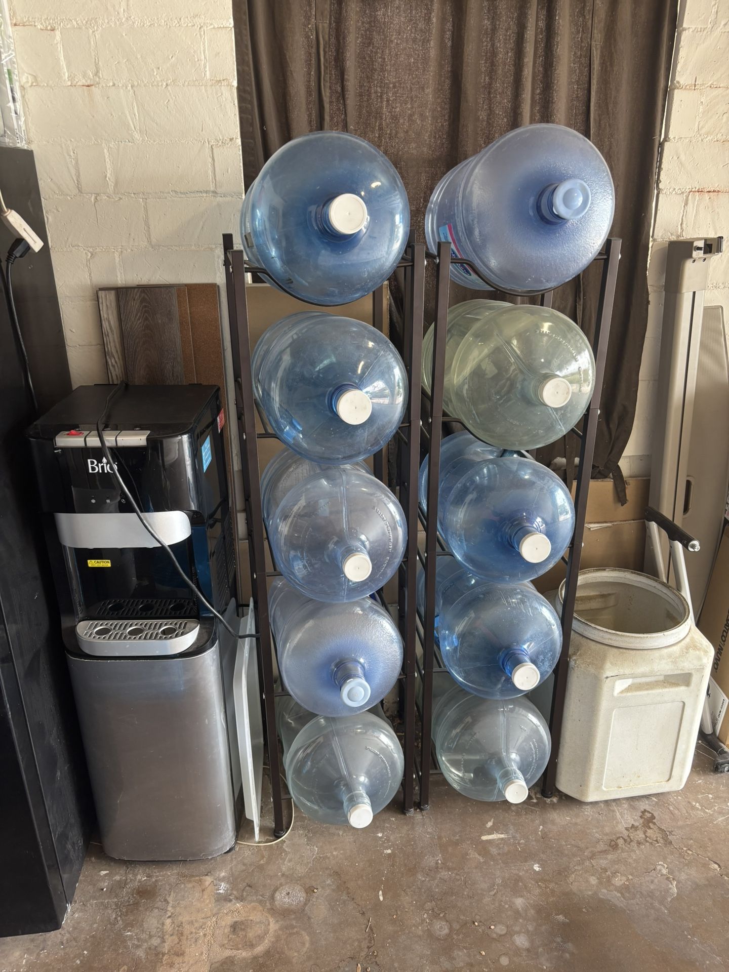 Brio Water Cooler, 10 Five Gallon Jugs And Storage Rack