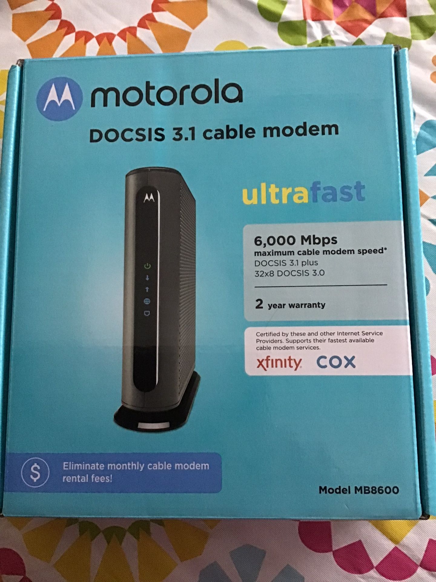 Motorola DocSis 3.1 Cable Modem. Model MM8600, new in box. Unable to use.