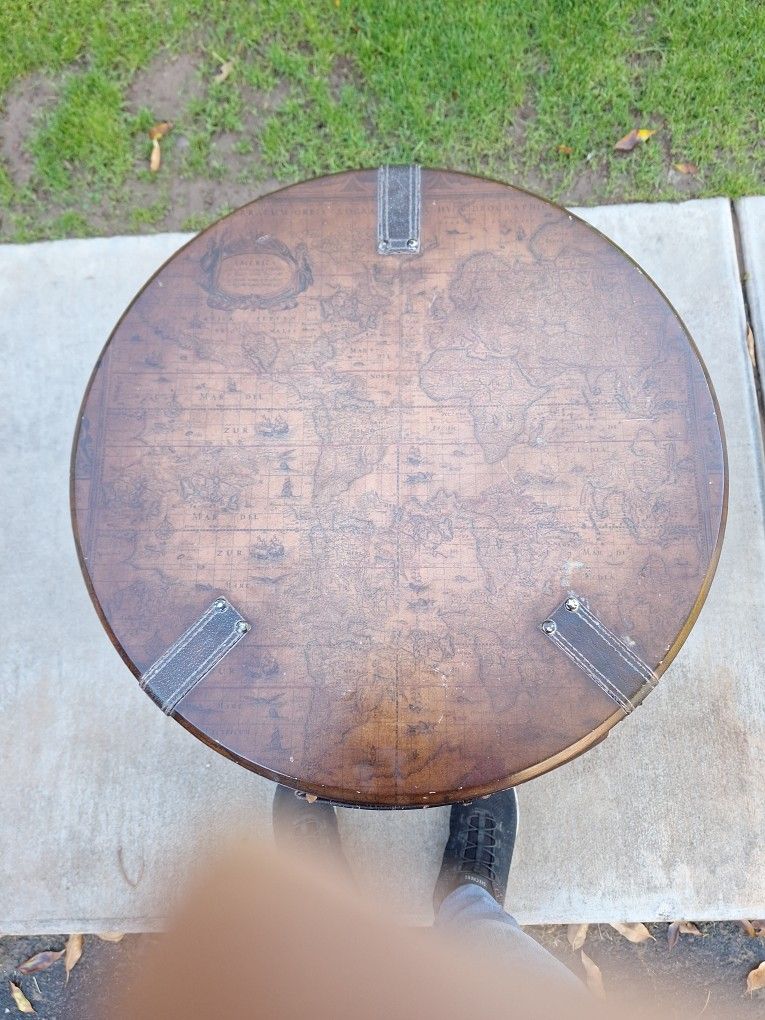Beautiful end tables with drawers and tops that depict ancient maps of the world. Great for geography or cartography buf.