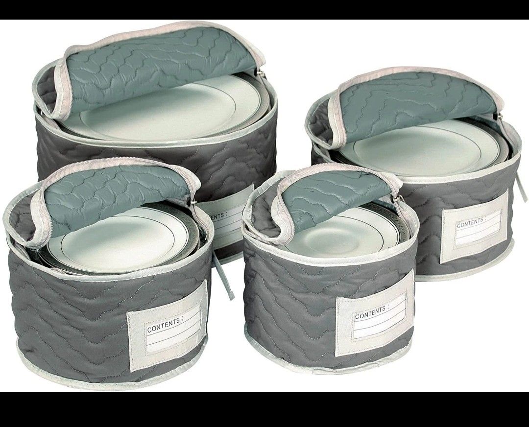 Richards China Storage Soft Quilted Zipper 4 Piece Set For Dinnerware Gray New