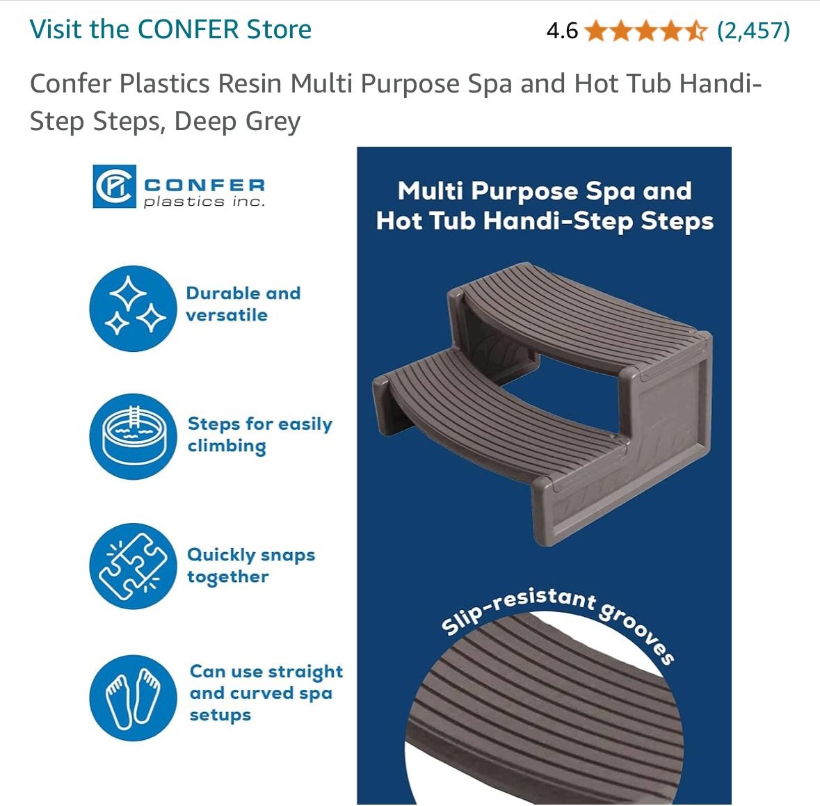 We love this step but the color wasn’t right for our hot tub. It’s very sturdy and great looking. We ordered the same one but in brown.