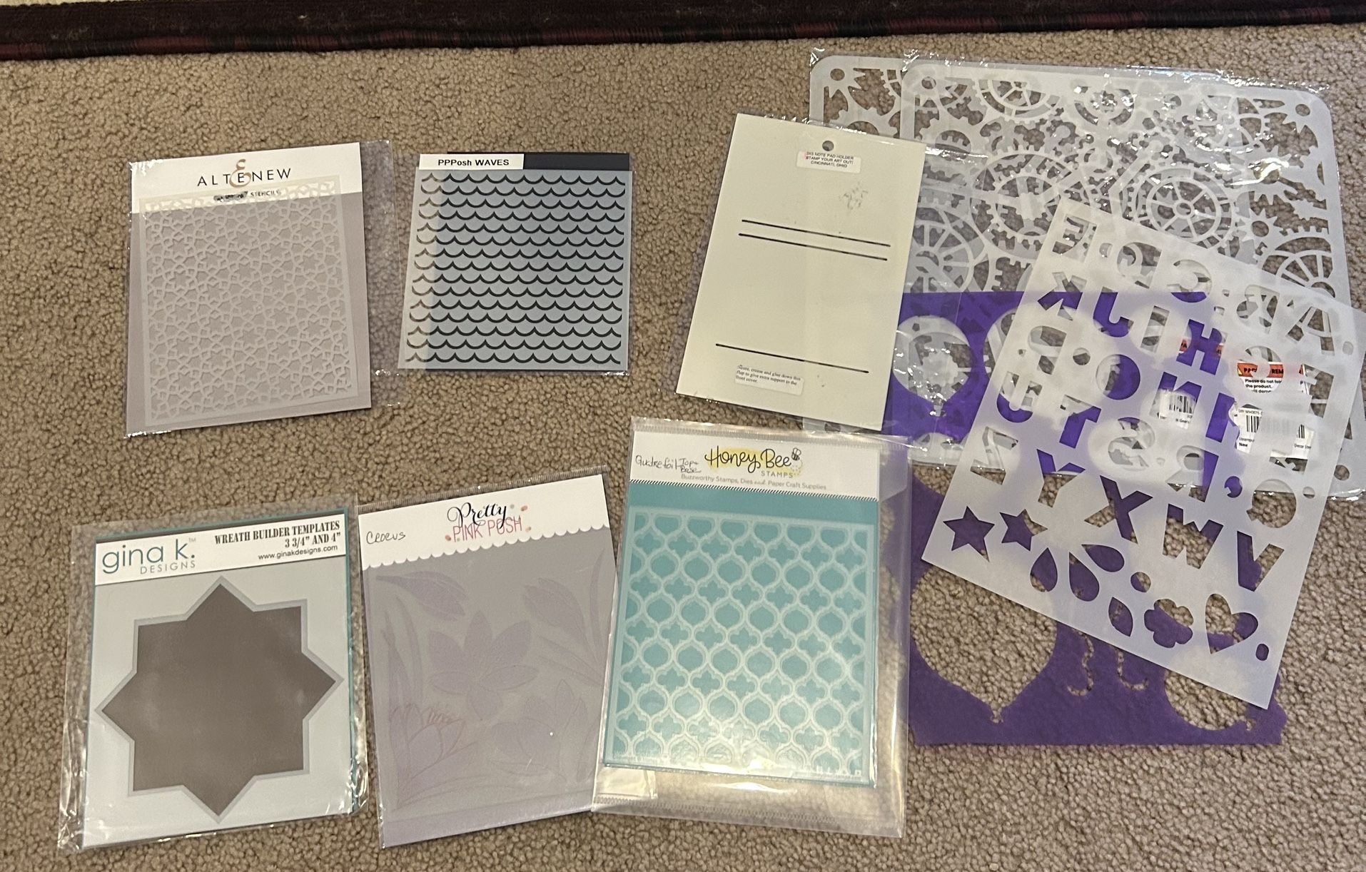 Stencils - Altenew, Gina K, Honey Bee, And Pretty Pink Posh