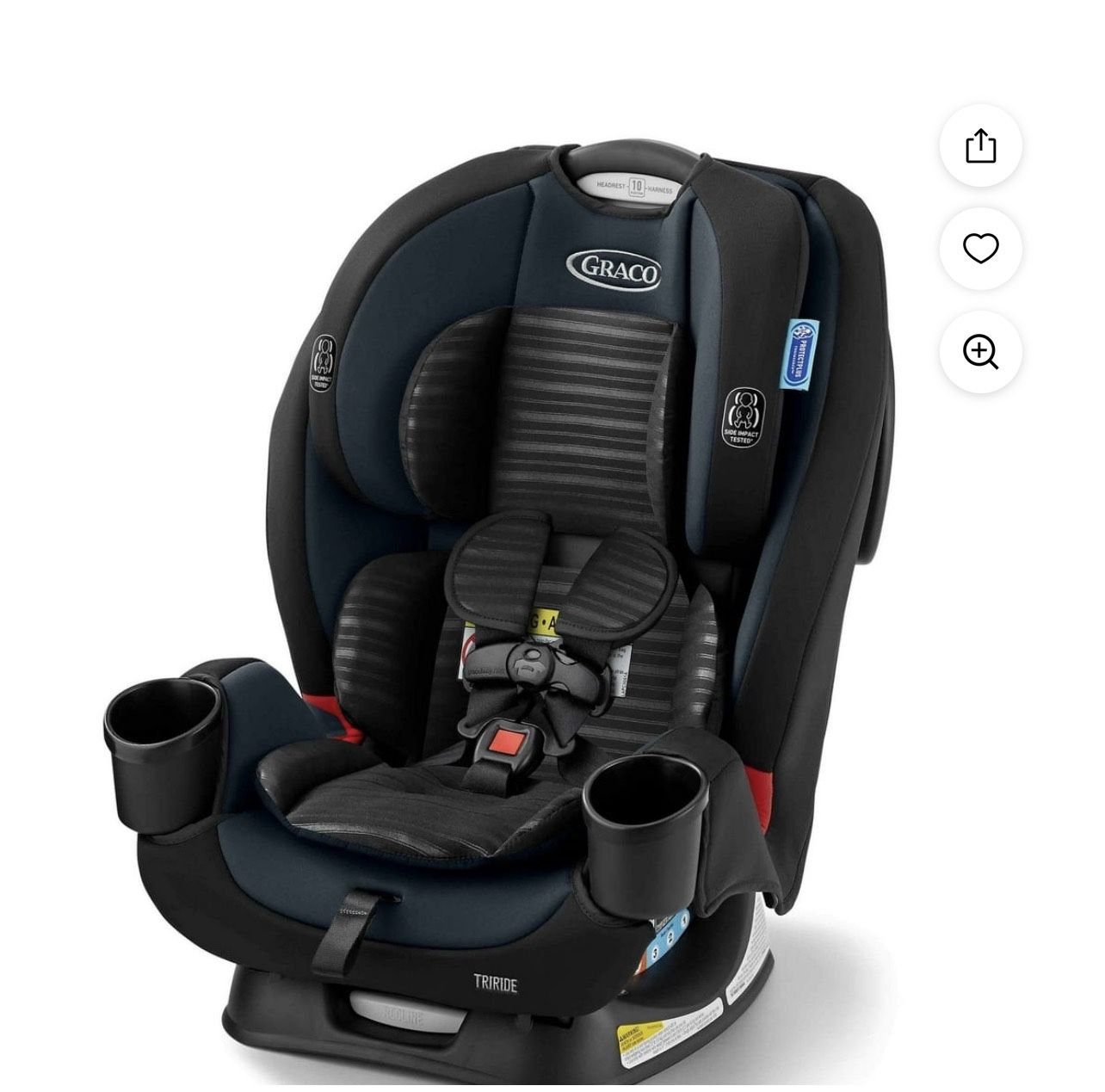 Current price 199.00 Brand new & unopened . Willing to sacrifice for 145 . • Graco TriRide 3-in-1 Car Seat, Clybourne, Black • 3-in-1 car seat grows with your child from rear-facing harness (5-40 lb) to forward-facing harness (26.5-65 lb) to highback booster (40-100 lb) • Graco ProtectPlus Engineered: a combination of the most rigorous crash tests that help to protect your child in frontal, side, rear & rollover crashes • No-Rethread Simply Safe Adjust Harness System allows the headrest and harness to adjust together in one motion • Choose the perfect headrest height from 10 positions to get the safest fit for your growing child • 6-position recline keeps your child comfy and helps for a better installation • Harness storage compartment keeps the harness safely stored while in belt-positioning booster mode • Open-loop belt guides help properly position your vehicle’s seat belt in highback booster mode • 2 easy-to-clean cup holders keep your child's drinks and snacks close at hand • Side-impact tested according to FMVSS 213a with the built-in 5-point harness system
