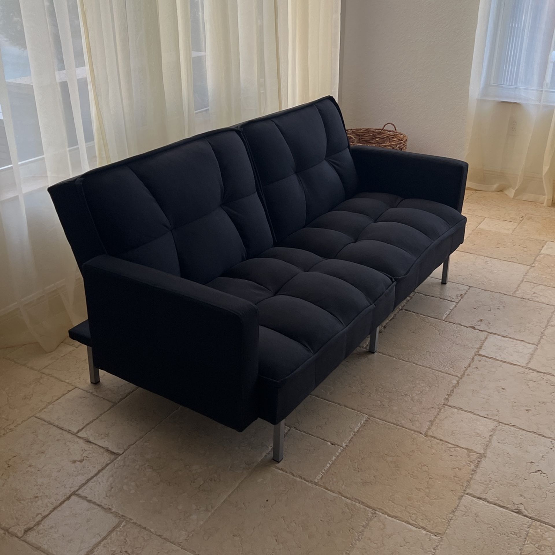 Black Fouton Couch / Sofa Bed In good condition. Turns jnto a bed. Can deliver for $25