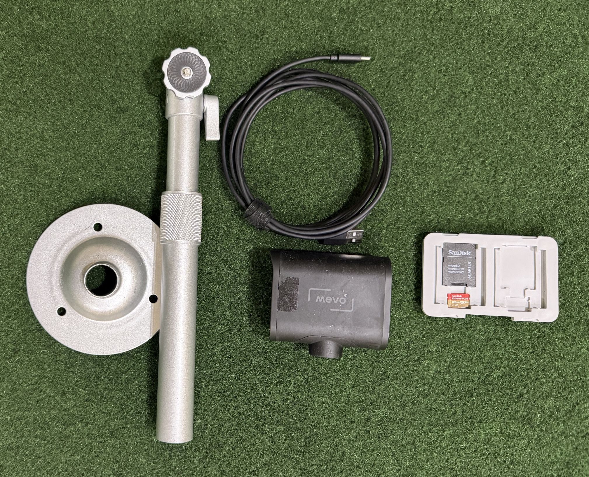 Logitech Mevo Start 1080p camera in good working order. This camera is ideal for GameChanger application. Could live stream 2 games and still have plenty of battery left. Comes with charging cable, table stand and a 128gb micro SD card plus adapter.