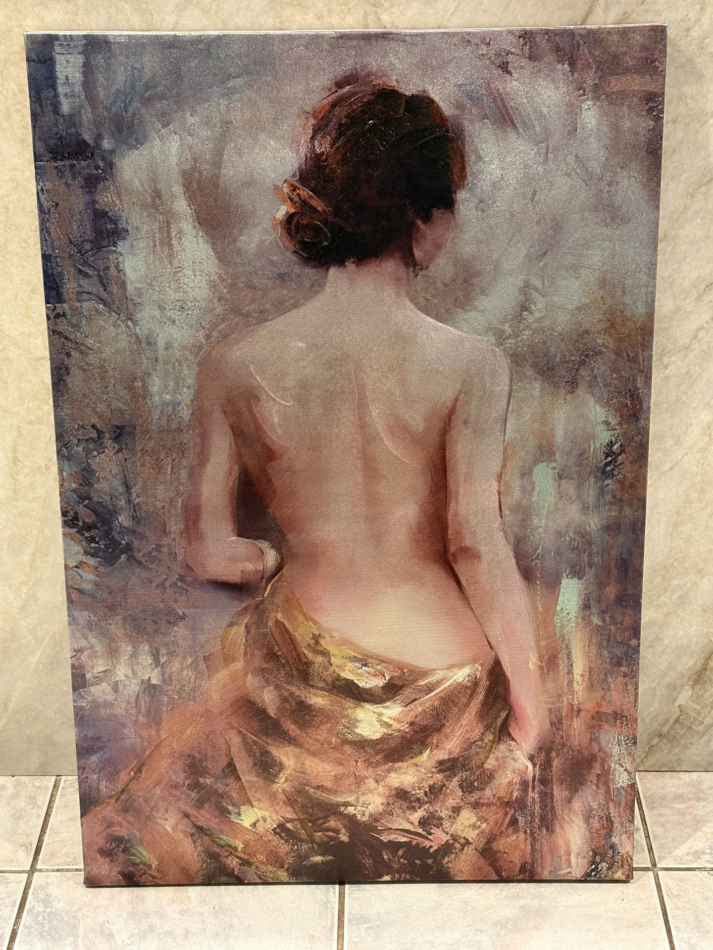 Bring a touch of elegance and warmth to your space with this stunning 24” x 36” canvas painting. Featuring a beautifully rendered, softly textured portrait from behind, the piece blends earthy tones, rich golds, and subtle brushwork to create a calming yet captivating focal point. Its impressionistic style adds depth and emotion, making it perfect for a bedroom, living room, or cozy retreat area. This artwork is ready to display and makes a great statement piece without overwhelming your décor. Whether you’re looking to elevate your home ambiance or add a tasteful, artistic touch, this canvas offers both sophistication and visual interest at an incredible value. Asking just $25. Located in Fallbrook for easy local pickup. Reach out if you’re interested—this piece is a unique find at a great price!