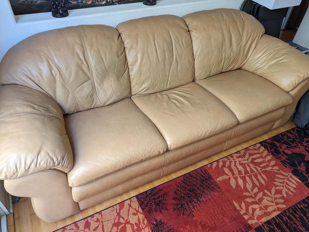 - Lightly used sofa set made from real leather. - Please coordinate pick up with your own vehicle, as we cannot deliver these or assist with transportation. - Sofa set is currently located in San Diego. - Price is $900 OBO for all 3 pieces.