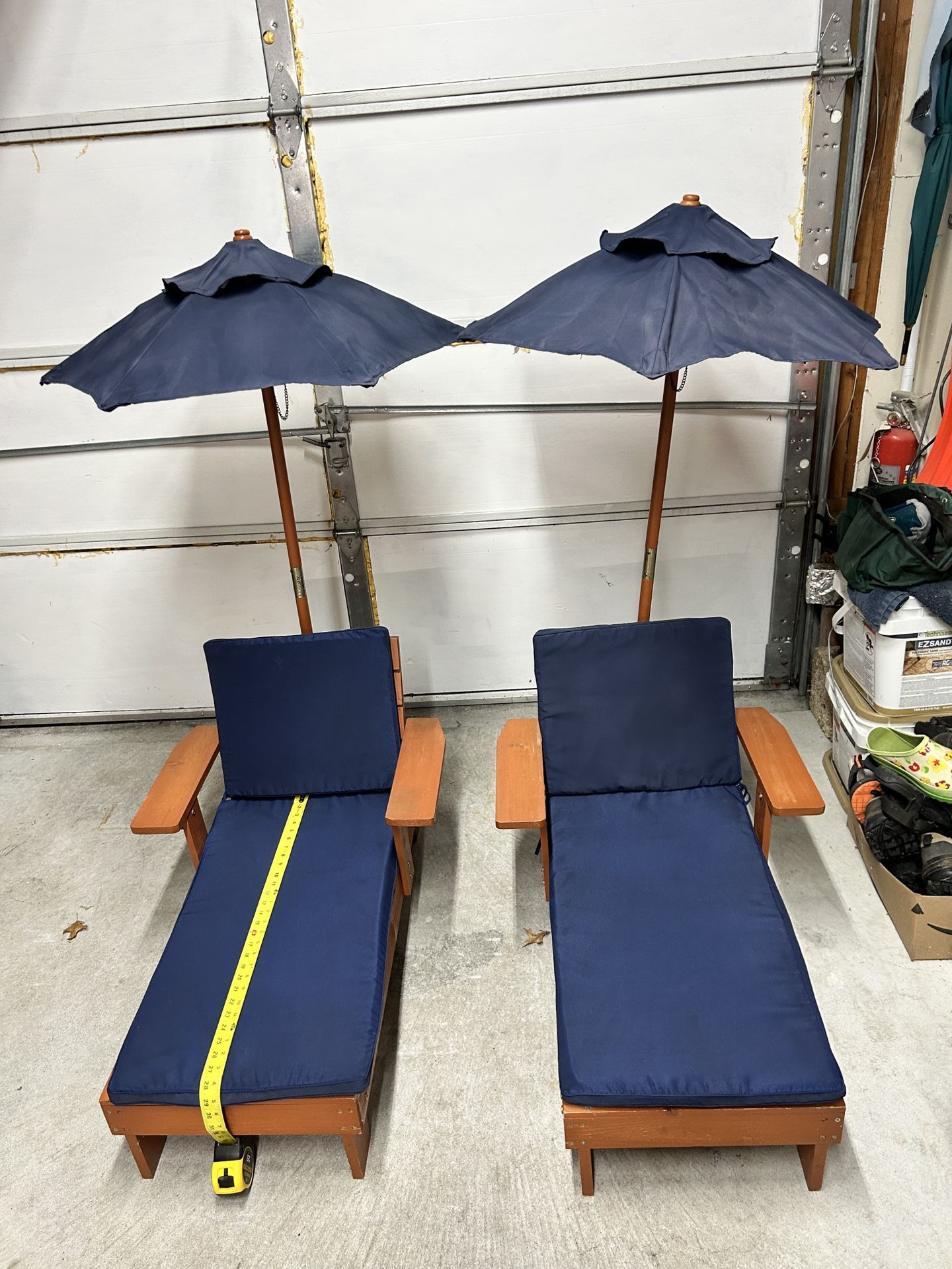 KidKraft Outdoor Wooden Chaise Lounge, Child’s Backyard Furniture Chair with Umbrella and Cushion - $90 for the pair.