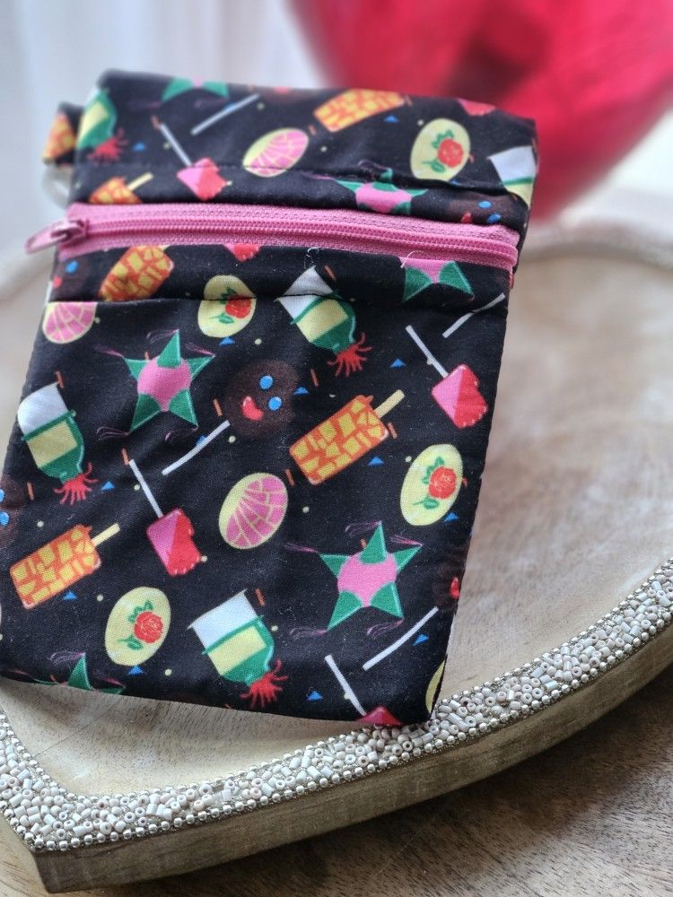 5×6" coin purse with a metal hook, these lil coin pouches are made to order, you can take a look at my etsy acct. for more selections. Great as a gift or to add to your collection