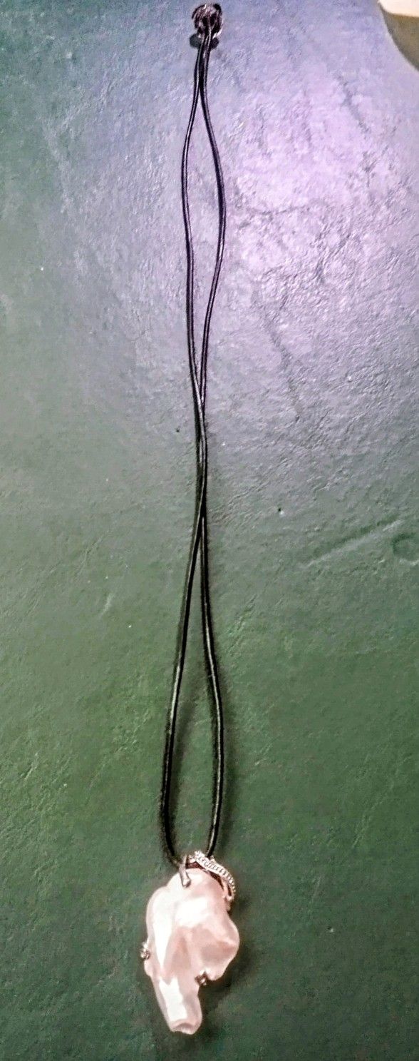 New Women Mother Of Pearl w/Silver Wrap & Black Leather Rope with a cushion Cut Crystal Bead length of Rope Is 28" Cash