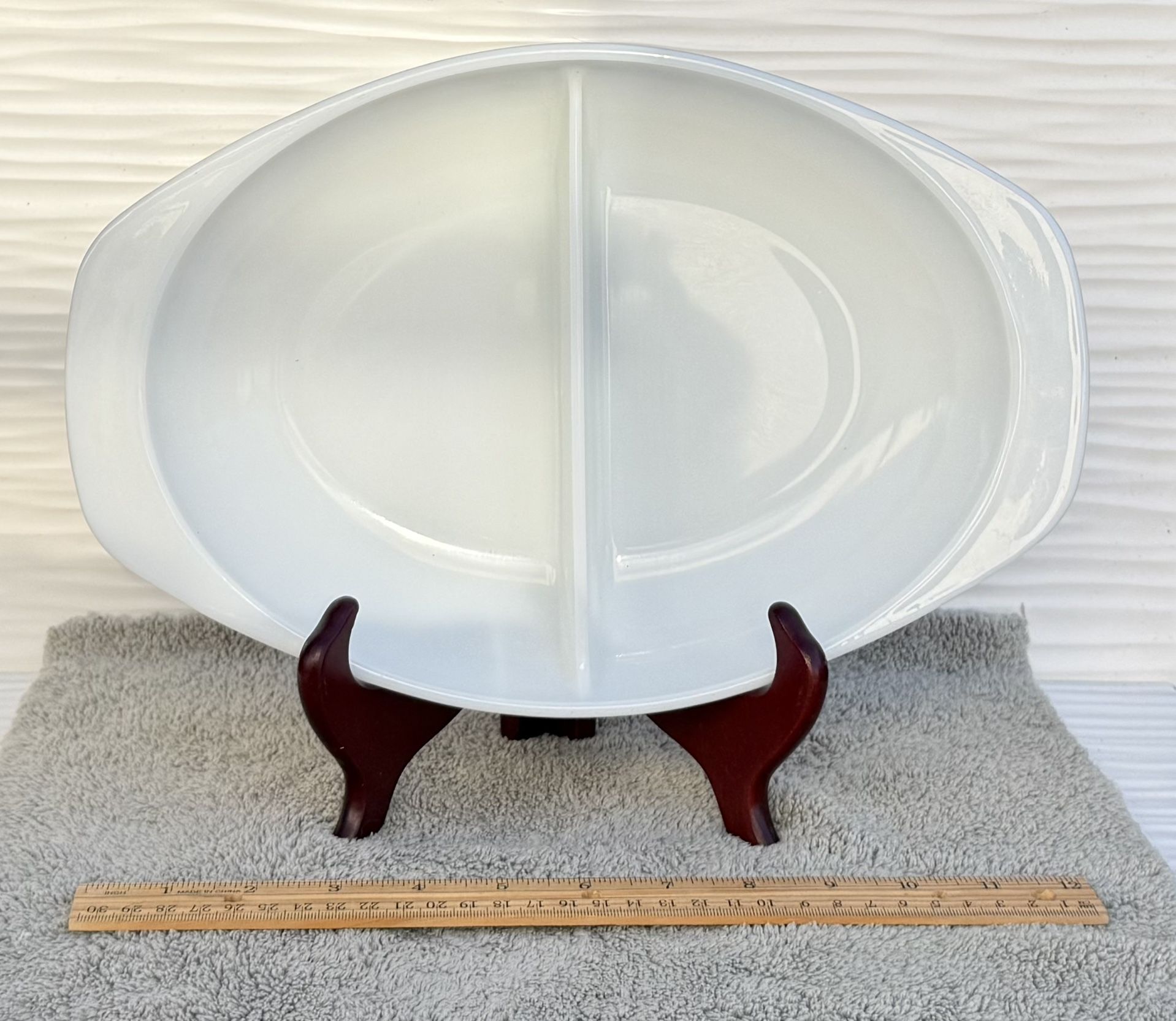 Vintage White Divided Oval Pyrex #1063 Baking Dish 1 1/2 Quart 13.5"L