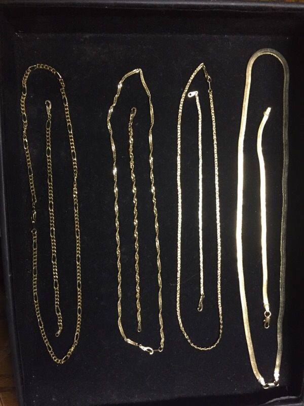 4 styles to choose from. 14k gold plated. Set $30 or can be purchased separately. Necklace $18 or bracelet $12. New. Never used. Will make a great gift for any occasion.