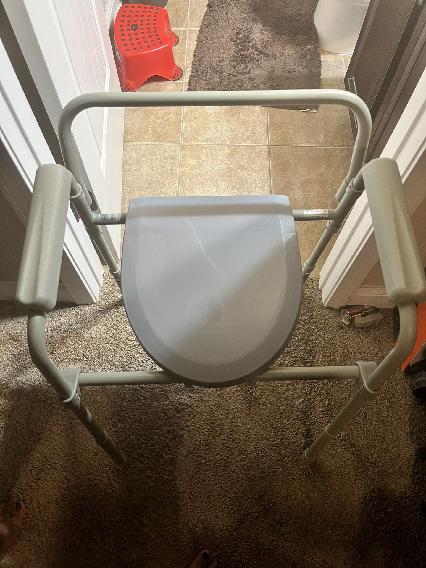 3 in 1 Commode – It is designed for use at bedside, as a raised Toilet Seat over a regular toilet, or as safety rails around a regular toilet. It can also be used as a porta potty for camping.