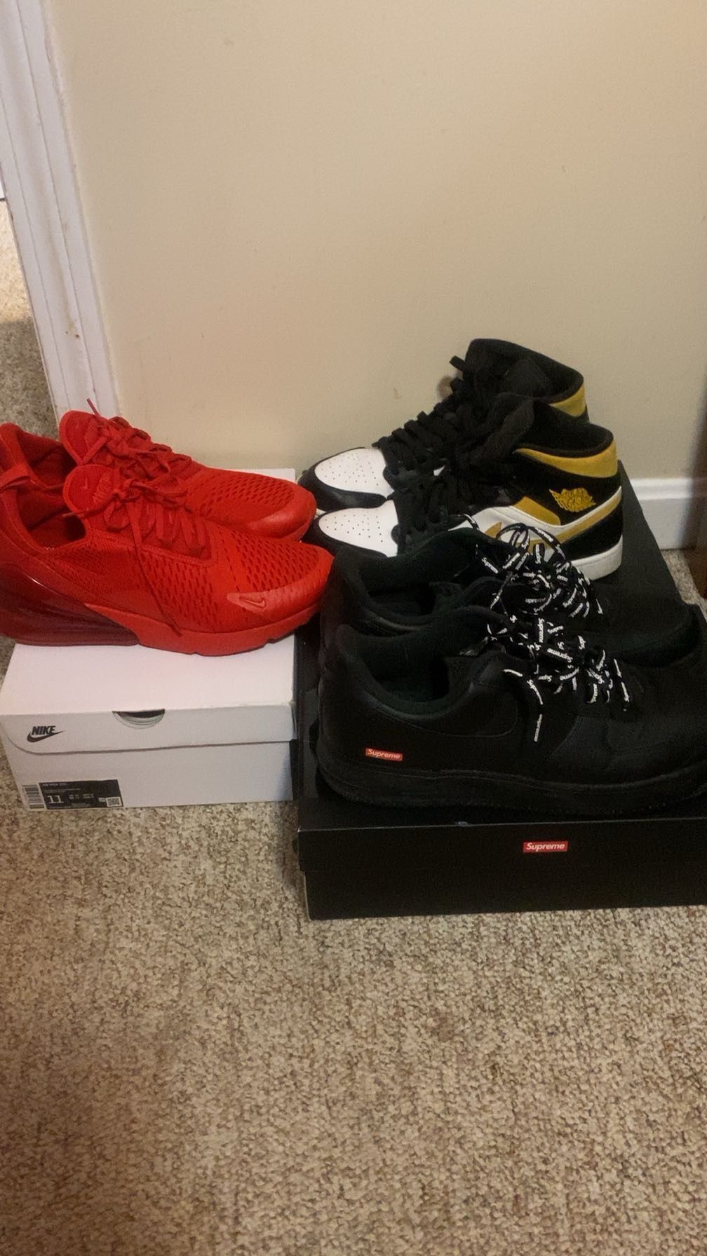 Supreme af1 sz 12 $135 come w box Gym Red Air Max 270 sz 11 $65 comes w box Jordan 1 Pollens sz 12 $60 comes w box