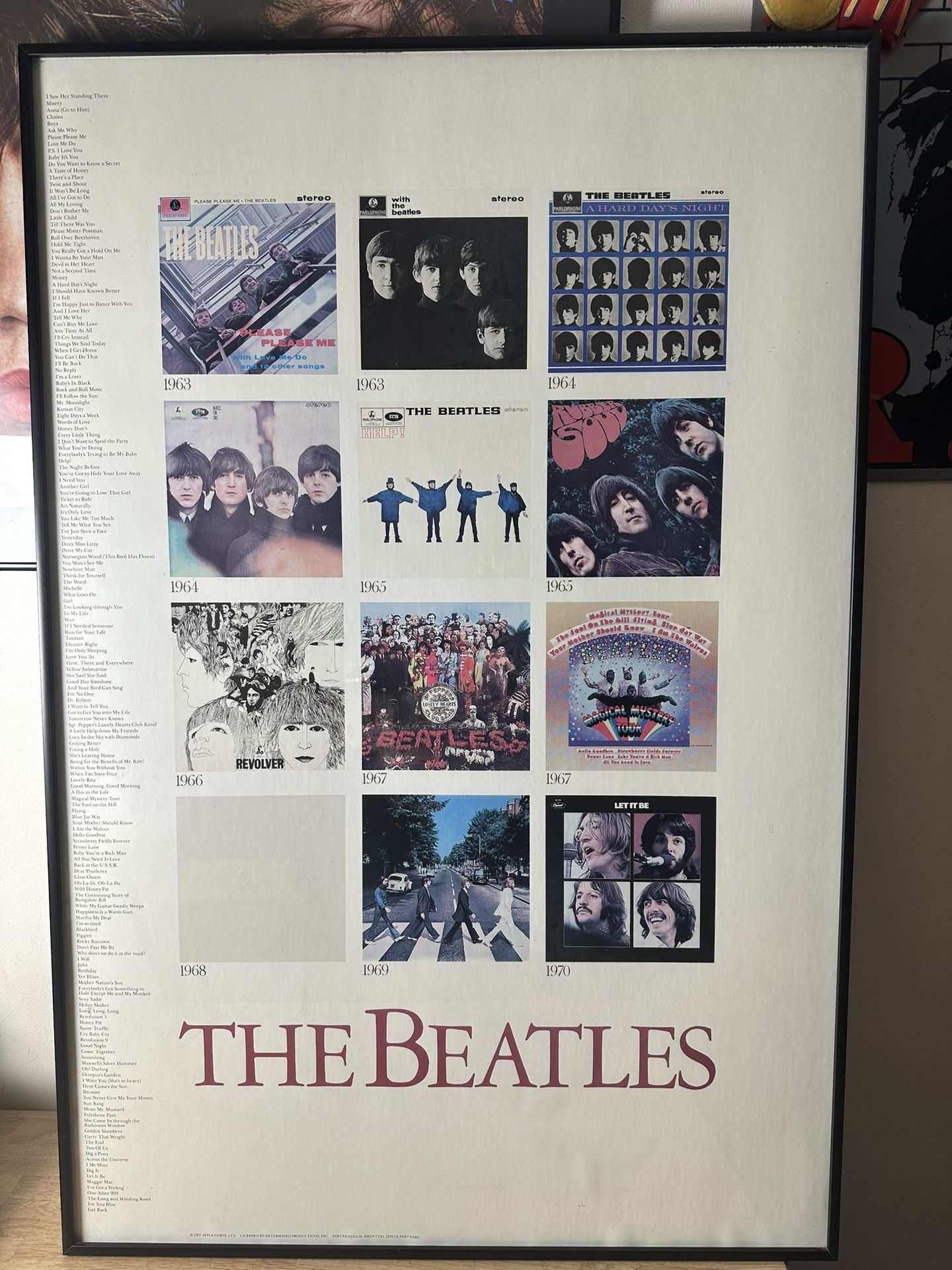 THE BEATLES ALBUM COVER COMPILATION APPLE CORP - 1987 GLASS FRAMED PRINT 24"x36"